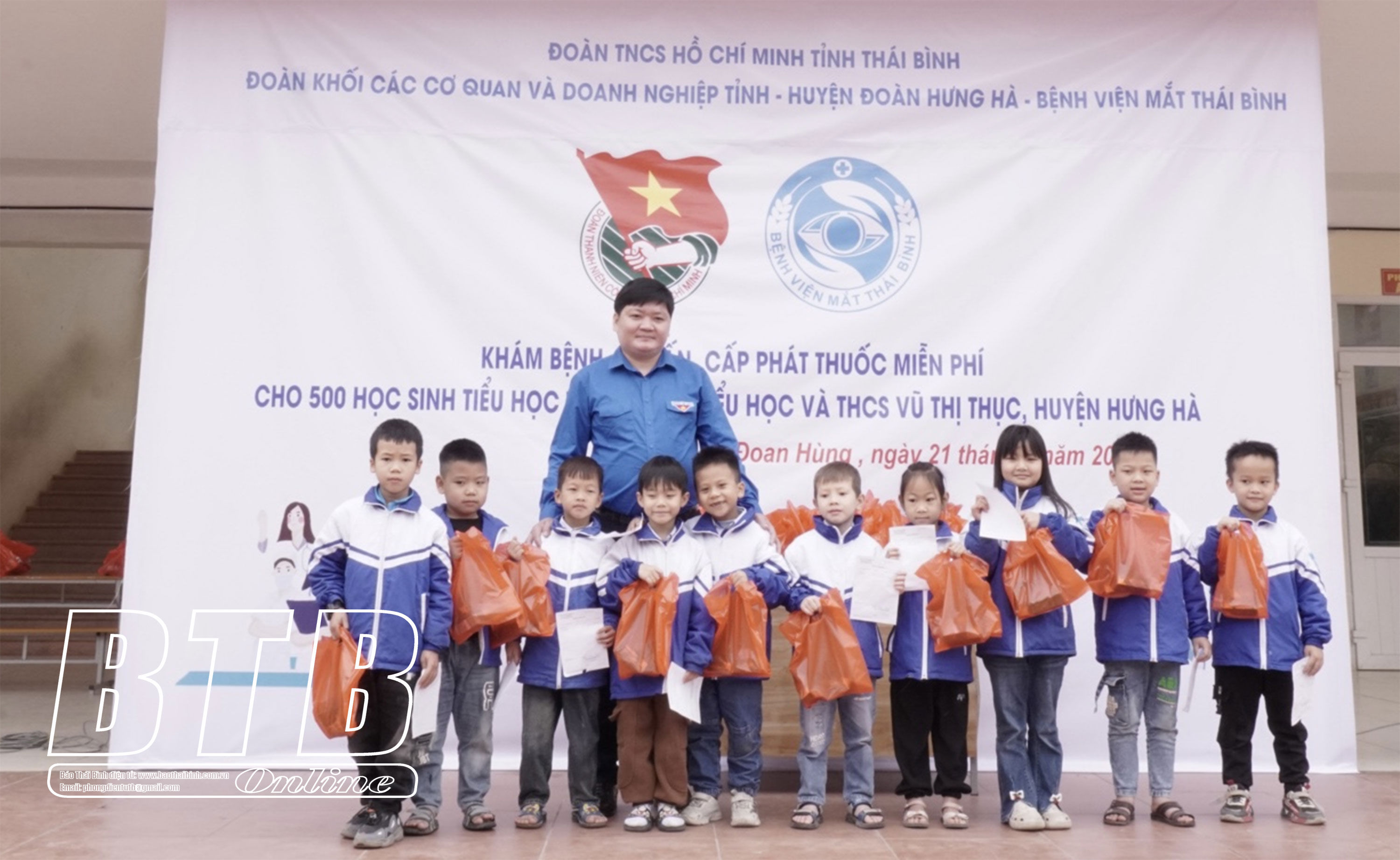 Hơn 500 em học sinh của Trường Tiểu học và THCS Vũ Thị Thục được khám mắt, tư vấn và cấp phát thuốc miễn phí. Chương trình này nằm trong chuỗi các hoạt động tháng thanh niên năm 2024, hướng đến kỷ niệm 93 năm ngày thành lập Đoàn Thanh niên Cộng sản Hồ Chí Minh (26/3/1931 - 26/3/2024), chào mừng Đại hội đại biểu Hội LHTN tỉnh lần thứ V, nhiệm kỳ 2024 - 2029, nhằm phát huy tinh thần xung kích tình nguyện của tuổi trẻ trong công tác an sinh xã hội.