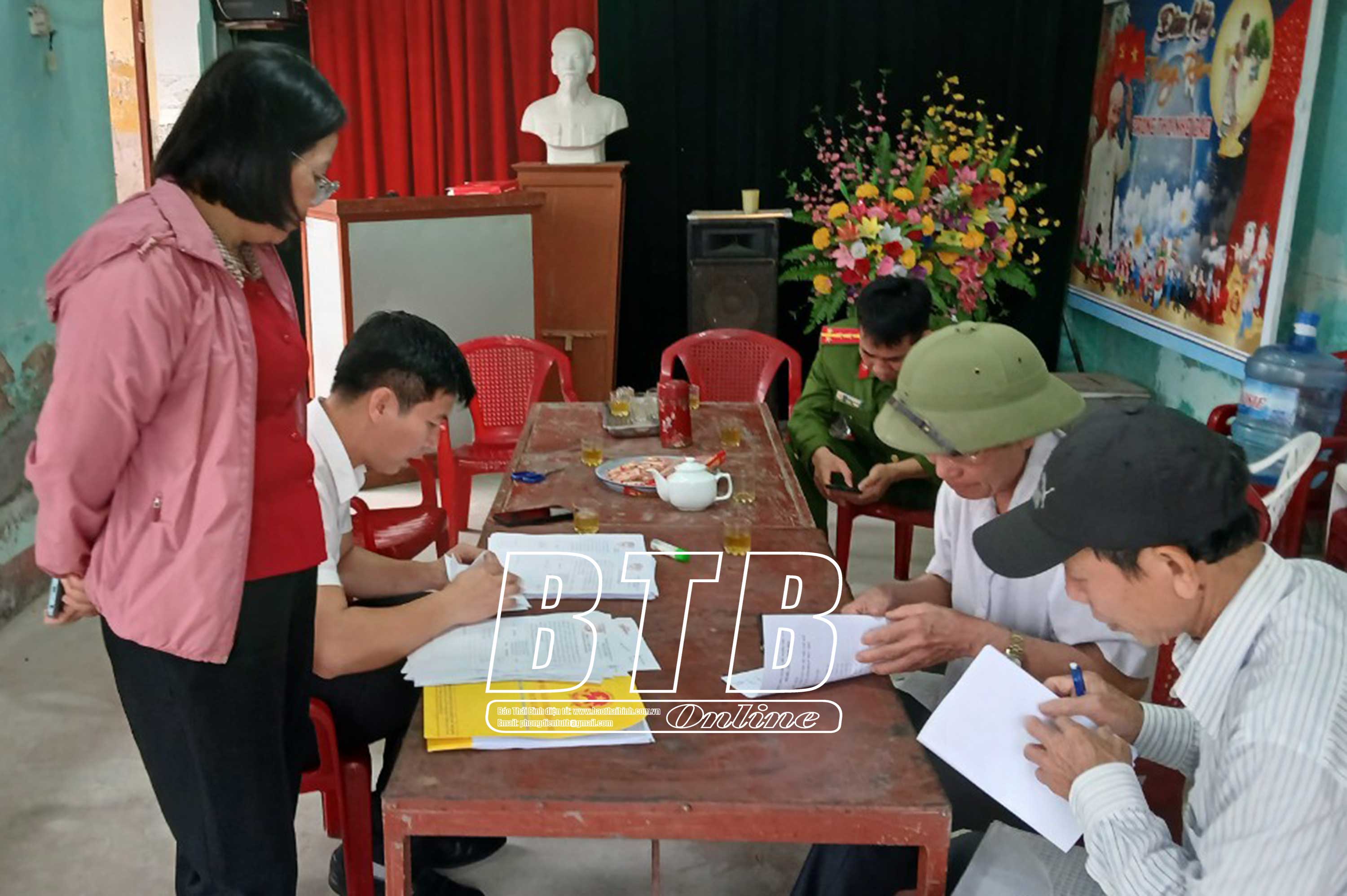 Đồng chí Phạm Đồng Thụy, Ủy viên Ban Thường vụ, Trưởng ban Tuyên giáo Tỉnh ủy kiểm tra công tác lấy ý kiến cử tri tại xã Vũ Hòa.