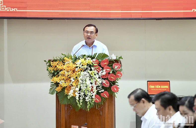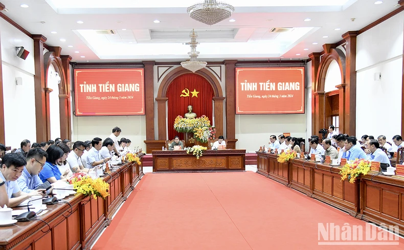 Thay mặt Chính phủ, Thủ tướng biểu dương và đánh giá cao những thành tựu của tỉnh Tiền Giang, đóng góp vào thành tích chung của Vùng đồng bằng sông Cửu Long và cả nước; lưu ý tỉnh không được lơ là, chủ quan, mất cảnh giác vì khó khăn, thách thức còn nhiều, vẫn còn hạn chế, bất cập: đó là tiềm năng thì lớn nhưng phát triển chưa tương xứng; nằm trong khu vực chịu tác động của biến đổi khí hậu như sạt lở, sụt lún, khô hạn, ngập mặn; hạ tầng chiến lược về giao thông, xã hội, y tế, giáo dục… còn hạn chế; thiếu nguồn nhân lực chất lượng cao; chưa hình thành các trung tâm công nghiệp lớn phục vụ công nghiệp hoá, hiện đại hoá của tỉnh, nhất là công nghiệp chế biến, chế tạo các sản phẩm cho ngành nông nghiệp; chưa kết nối được chuỗi sản xuất, cung ứng khu vực, cả nước cũng như toàn cầu; chi ngân sách còn bất hợp lý.