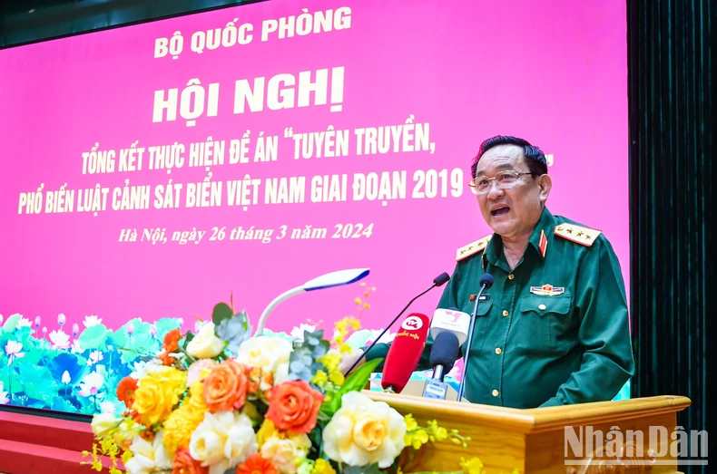 Ngày 26/3, tại Hà Nội đã diễn ra hội nghị tổng kết thực hiện Đề án Tuyên truyền, phổ biến Luật Cảnh sát biển Việt Nam giai đoạn 2019-2023. Thượng tướng Võ Minh Lương, Ủy viên Trung ương Đảng, Thứ trưởng Quốc phòng dự và chủ trì.