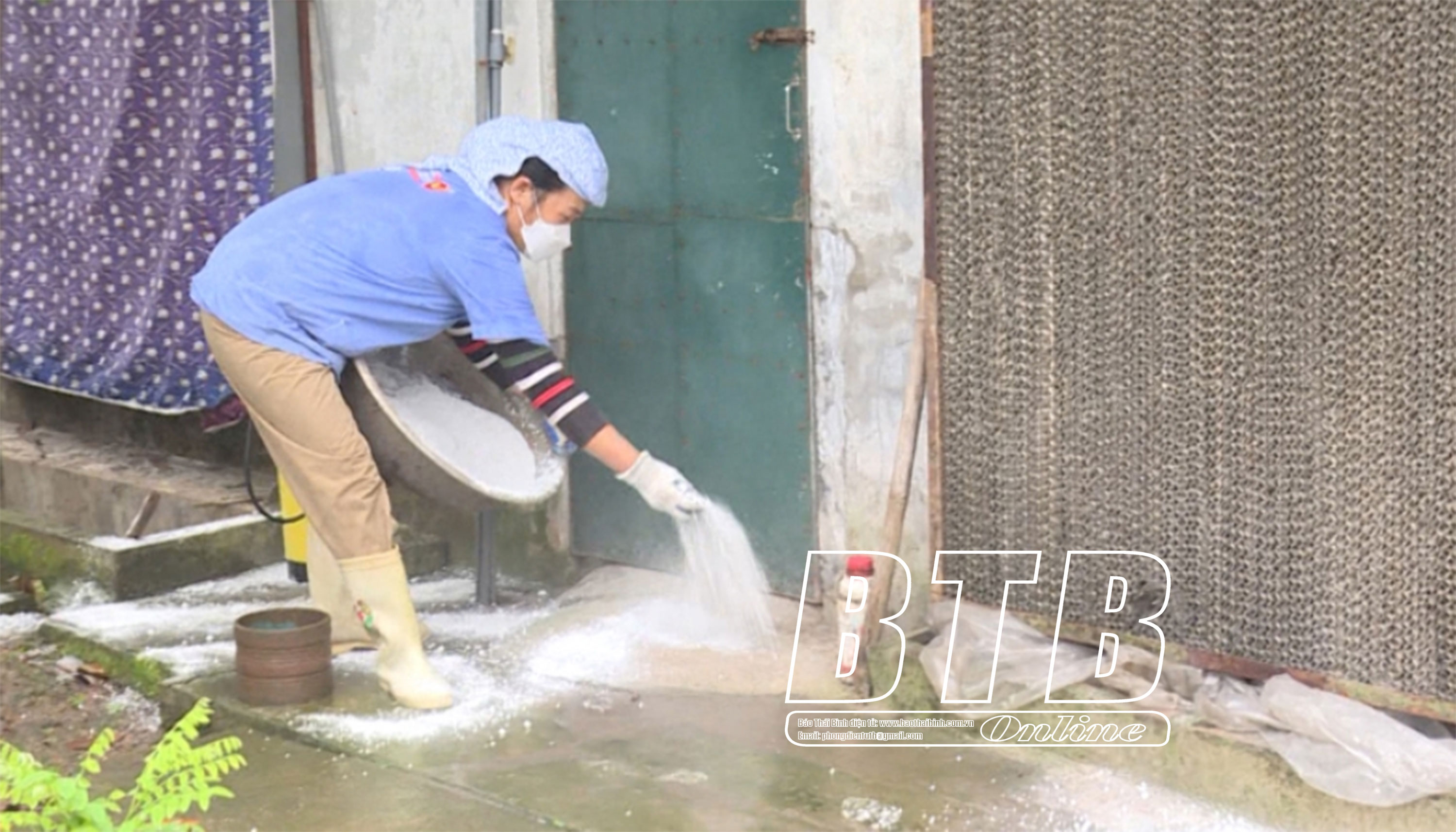 Hộ dân huyện Tiền Hải thực hiện vệ sinh chuồng trại chăn nuôi phòng, chống dịch bệnh cho đàn gia súc, gia cầm.