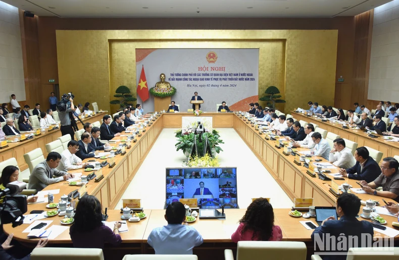 Chiều tối 2/4, tại Trụ sở Chính phủ, Thủ tướng Phạm Minh Chính chủ trì Hội nghị Thủ tướng Chính phủ với các Trưởng Cơ quan đại diện Việt Nam ở nước ngoài về đẩy mạnh công tác ngoại giao kinh tế (NGKT) phục vụ phát triển năm 2024.