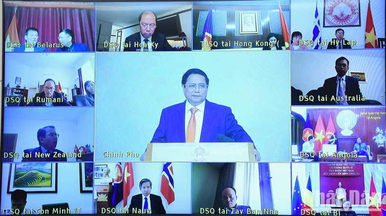 Phát biểu ý kiến kết luận hội nghị, Thủ tướng Phạm Minh Chính chuyển lời thăm hỏi, chúc mừng của Tổng Bí thư Nguyễn Phú Trọng tới các đại biểu dự cuộc họp, mong các đại biểu, trong đó có các Trưởng Cơ quan đại diện Việt Nam ở nước ngoài tiếp tục làm hết sức mình vì sự phát triển của đất nước. Thủ tướng đề nghị các chủ thể tiếp tục thực hiện các nhiệm vụ, các hoạt động trên tinh thần “3 cùng”: cùng lắng nghe và thấu hiểu; cùng chia sẻ tầm nhìn hành động; cùng làm, cùng thắng, cùng hưởng và cùng phát triển.