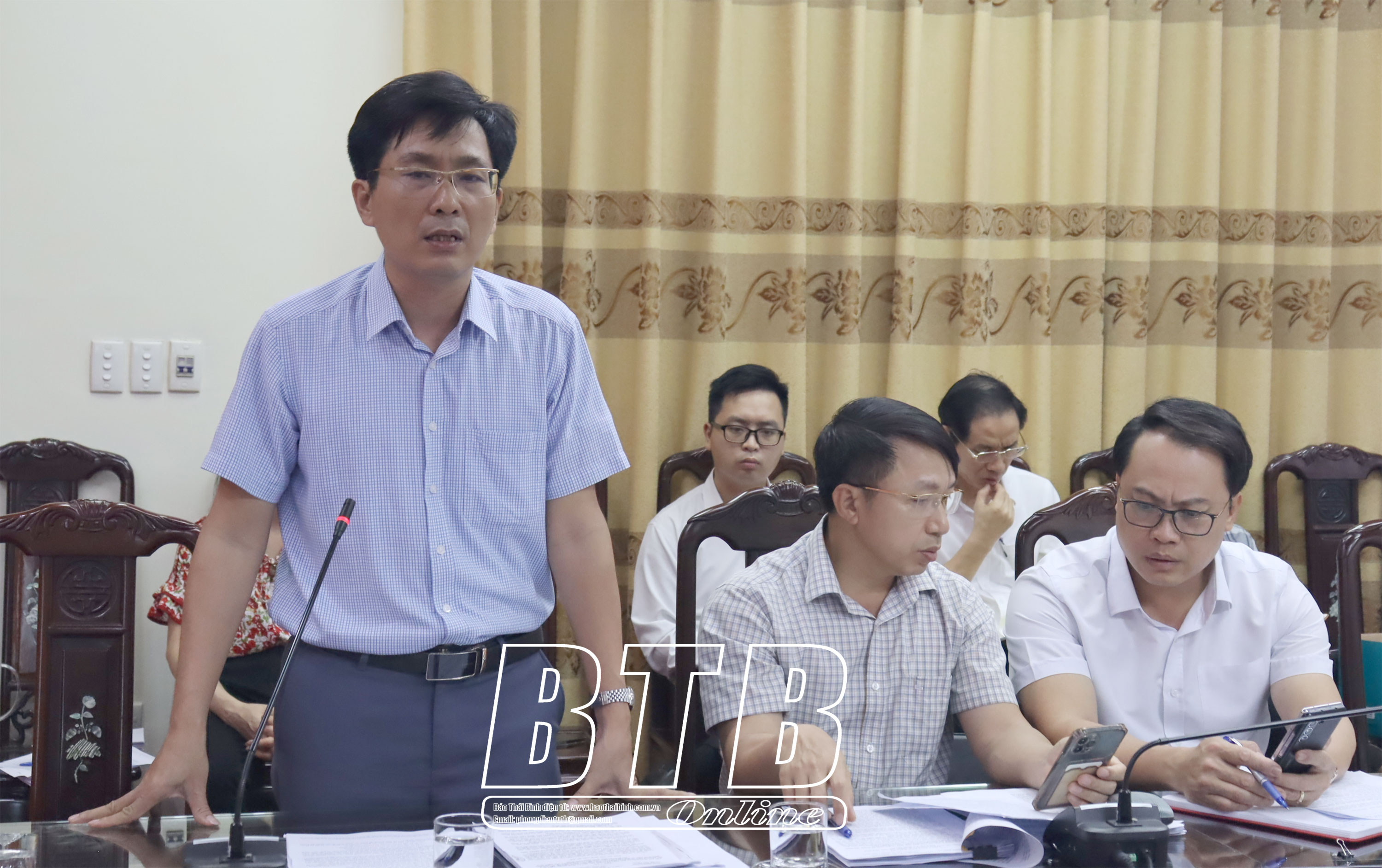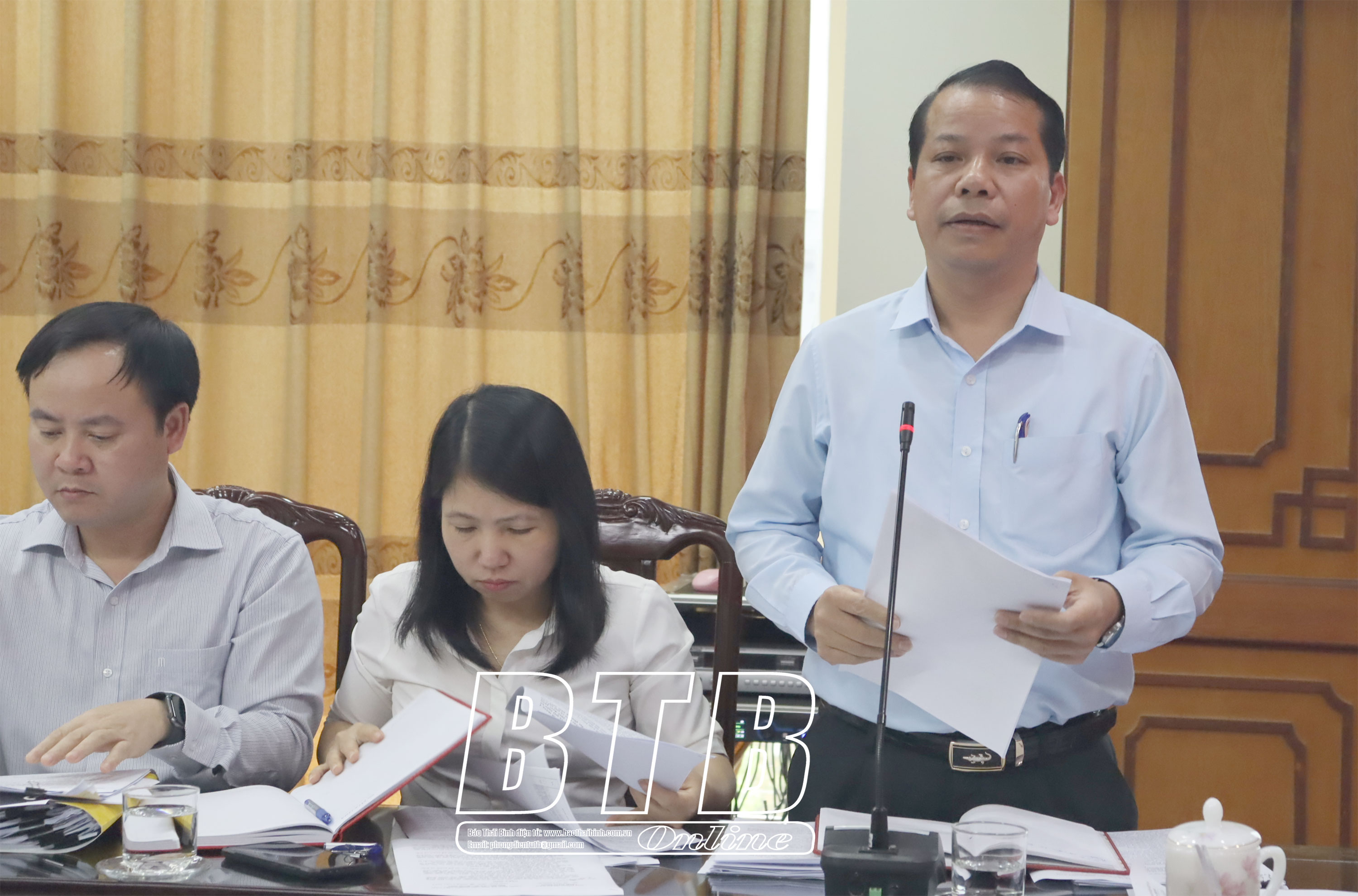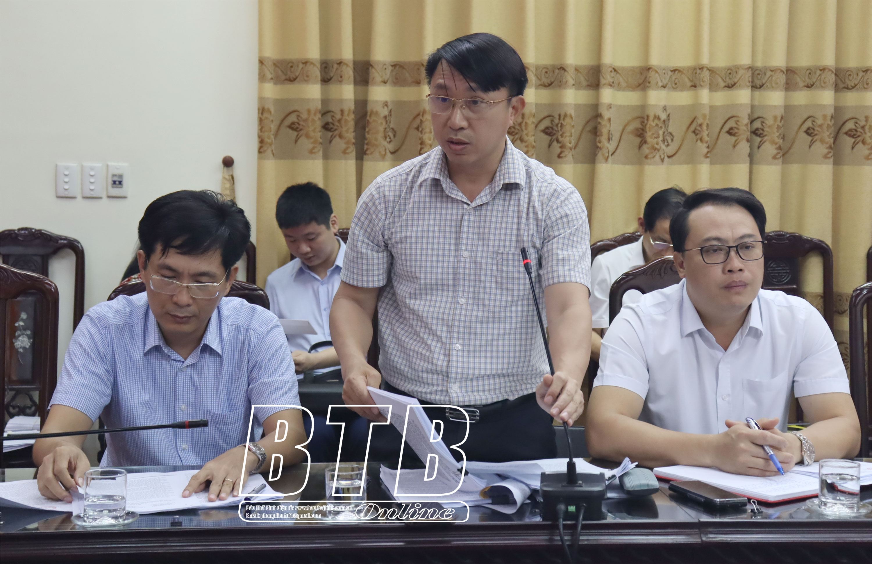 Các đồng chí: Nguyễn Tiến Thành, Phó Bí thư thường trực Tỉnh ủy, Chủ tịch HĐND tỉnh; Đặng Thanh Giang, Ủy viên Ban Thường vụ Tỉnh ủy, Phó Chủ tịch thường trực HĐND tỉnh; Vũ Ngọc Trì, Tỉnh ủy viên, Phó Chủ tịch HĐND tỉnh chủ trì cuộc họp.