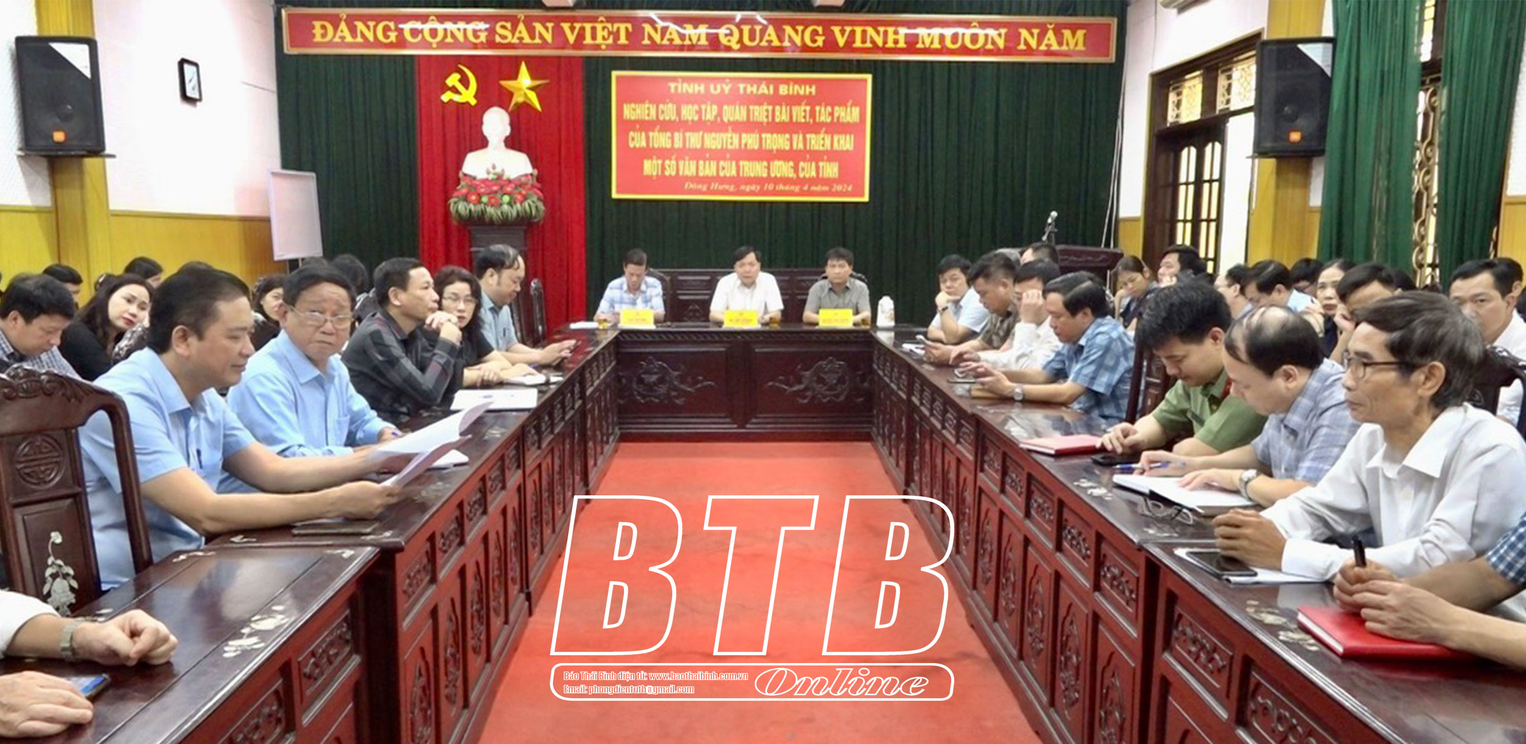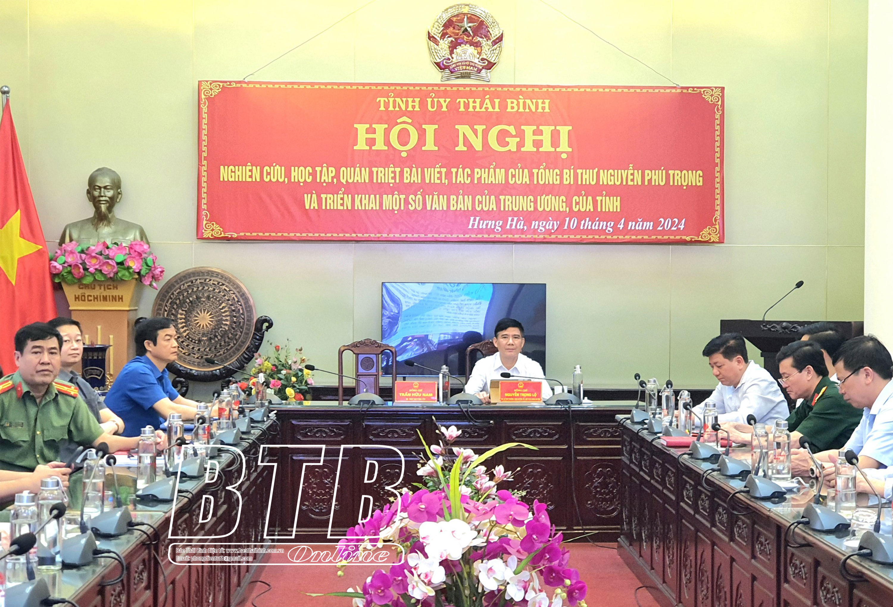 Sáng ngày 10/4, Ban Thường vụ Tỉnh ủy tổ chức hội nghị trực tiếp kết hợp trực tuyến toàn tỉnh nghiên cứu, học tập, quán triệt bài viết, tác phẩm của Tổng Bí thư Nguyễn Phú Trọng và triển khai một số văn bản của Trung ương, của tỉnh.