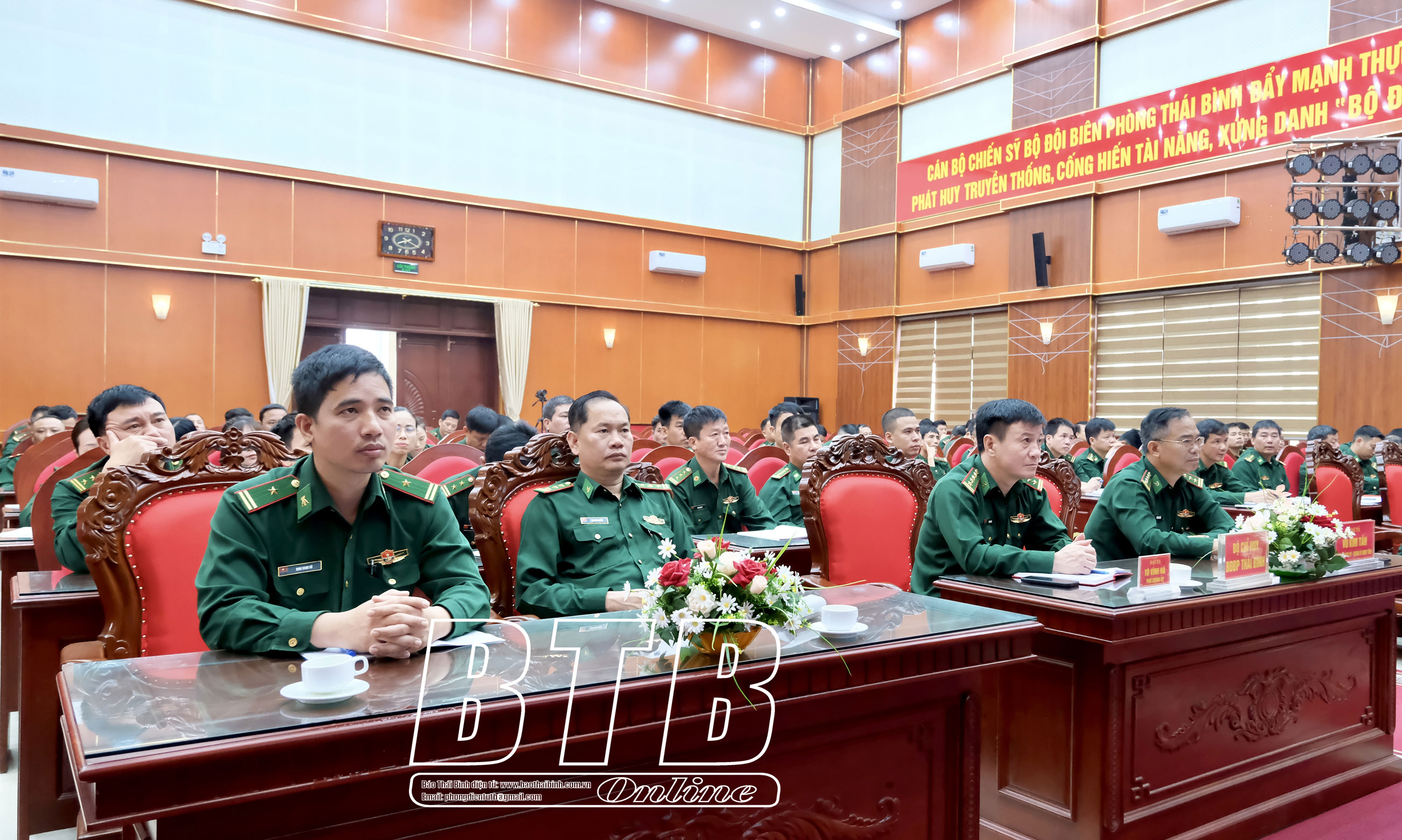 Cán bộ, chiến sĩ dự hội nghị tại điểm cầu Bộ Chỉ huy Bộ đội Biên phòng tỉnh. Ảnh: Quang Triệu