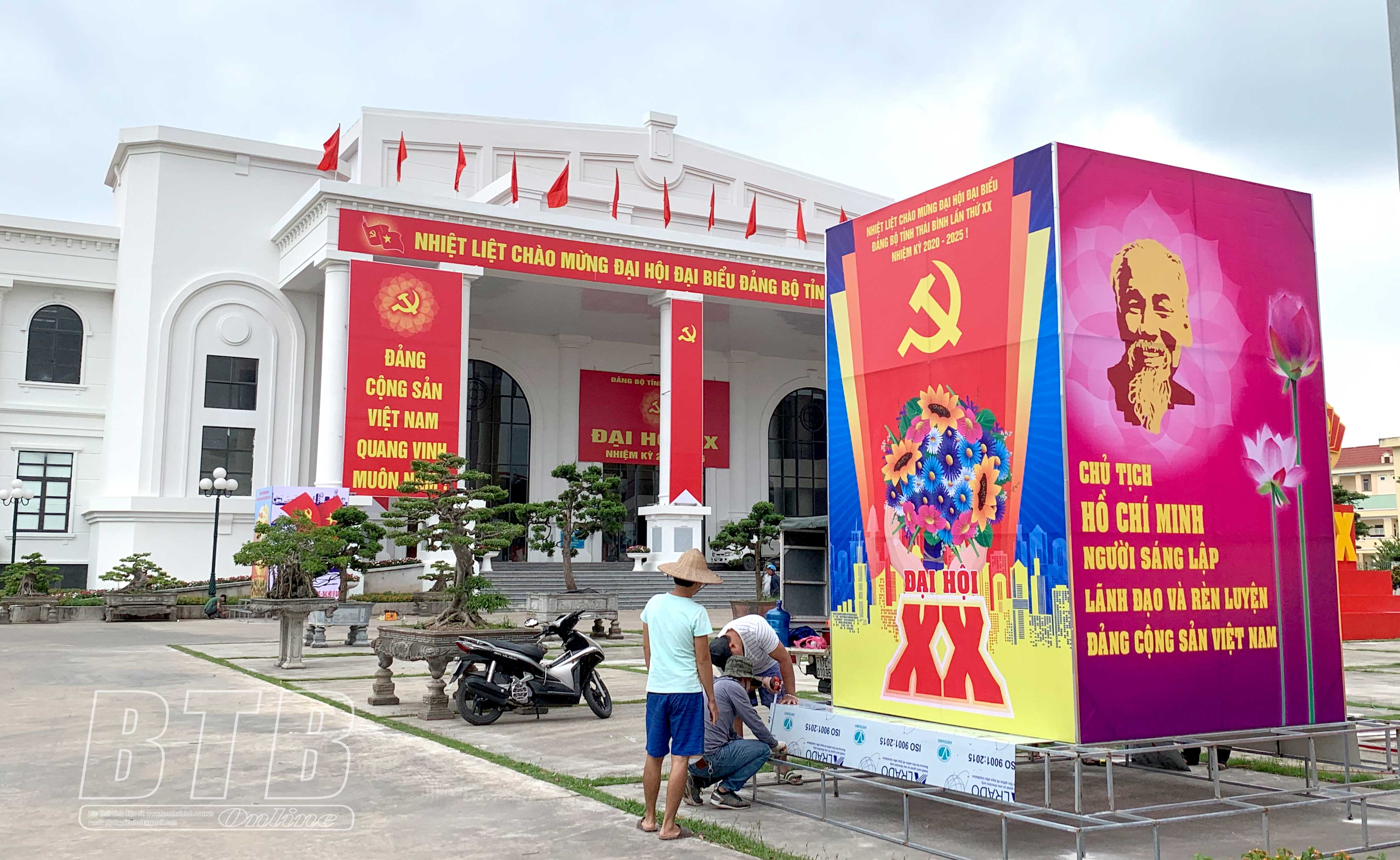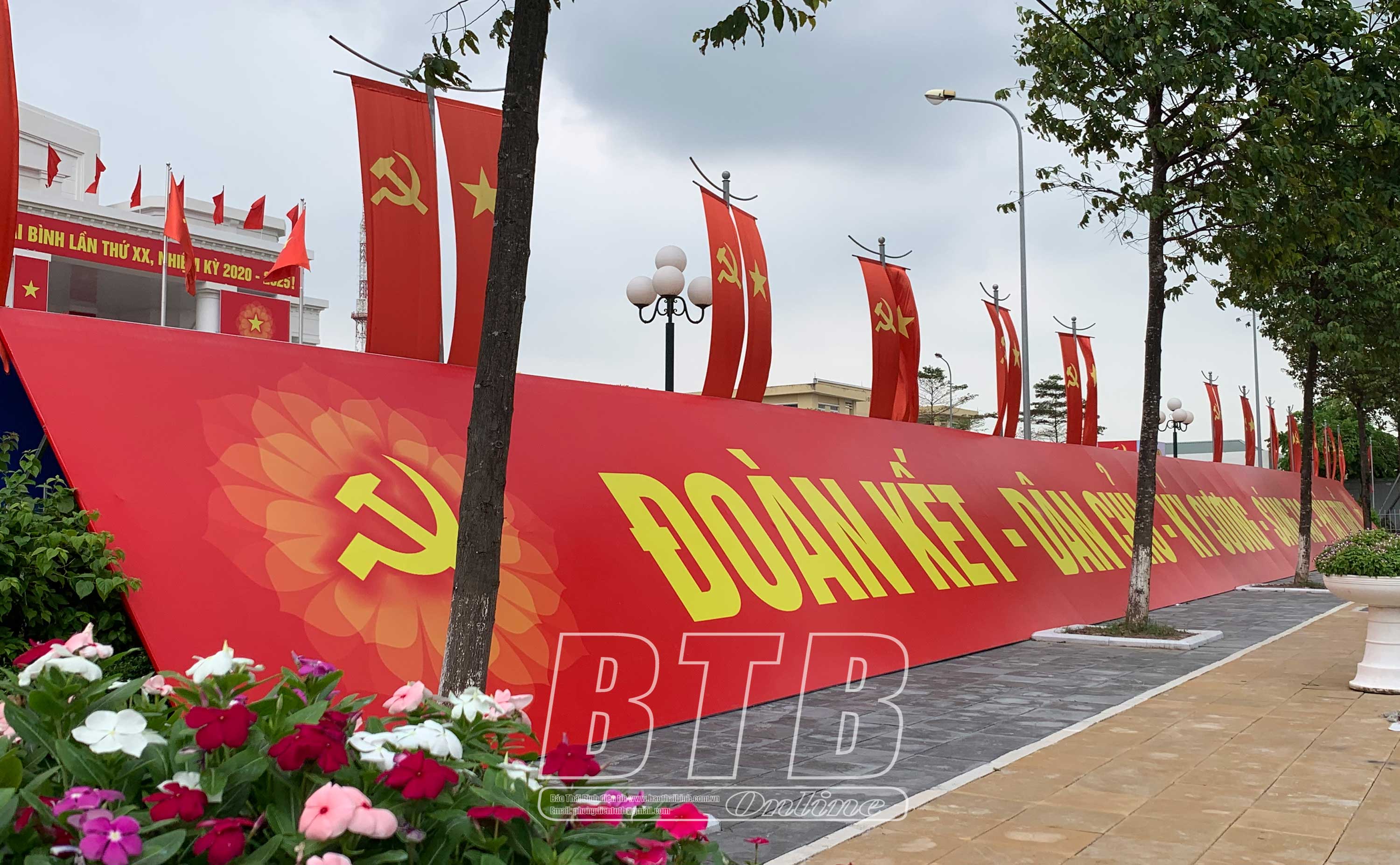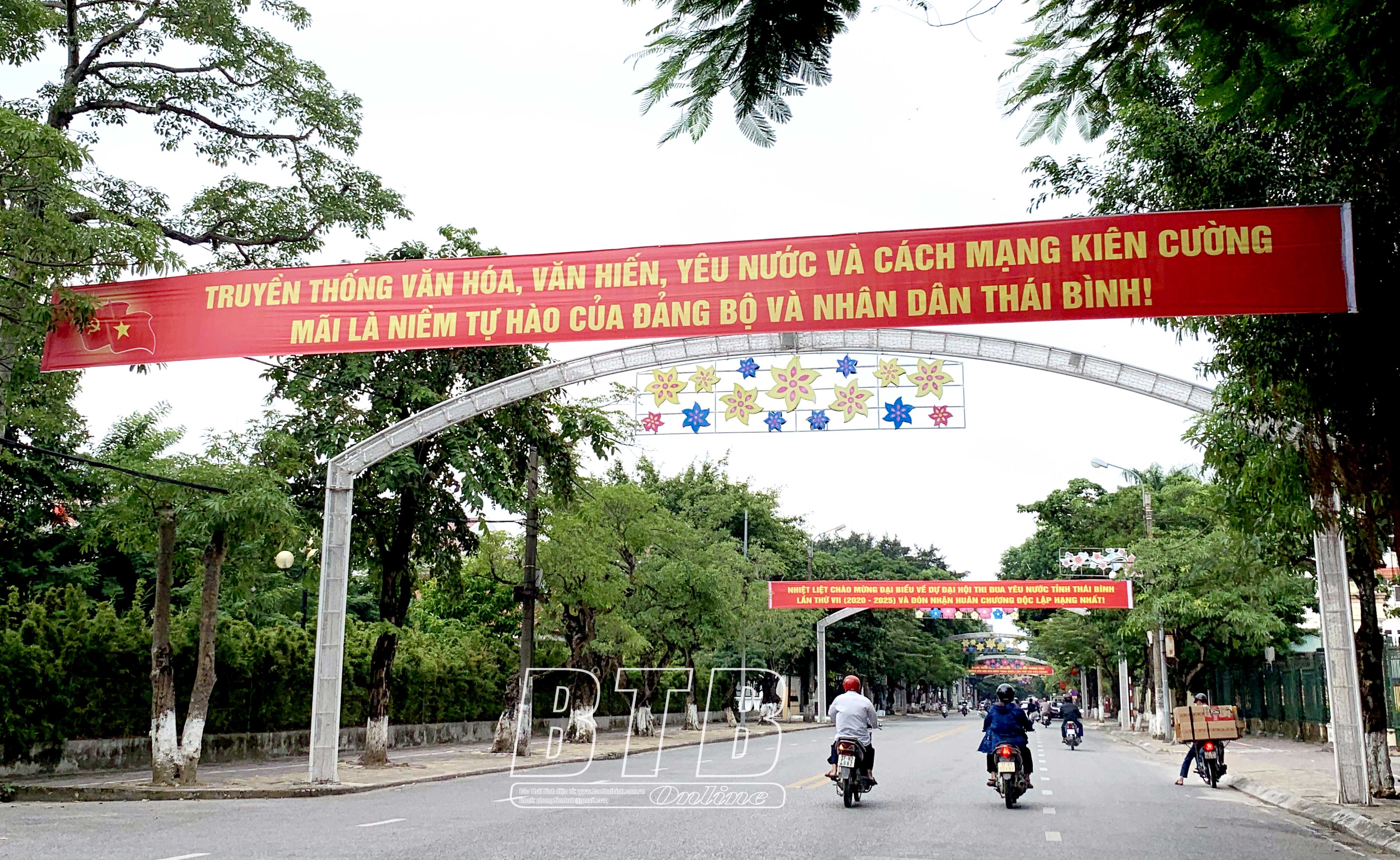 Trên các tuyến đường chính của thành phố Thái Bình hệ thống pano, băng rôn, khẩu hiệu, áp phích được trang hoàng tạo không khí vui tươi, phấn khởi chào mừng Đại hội.