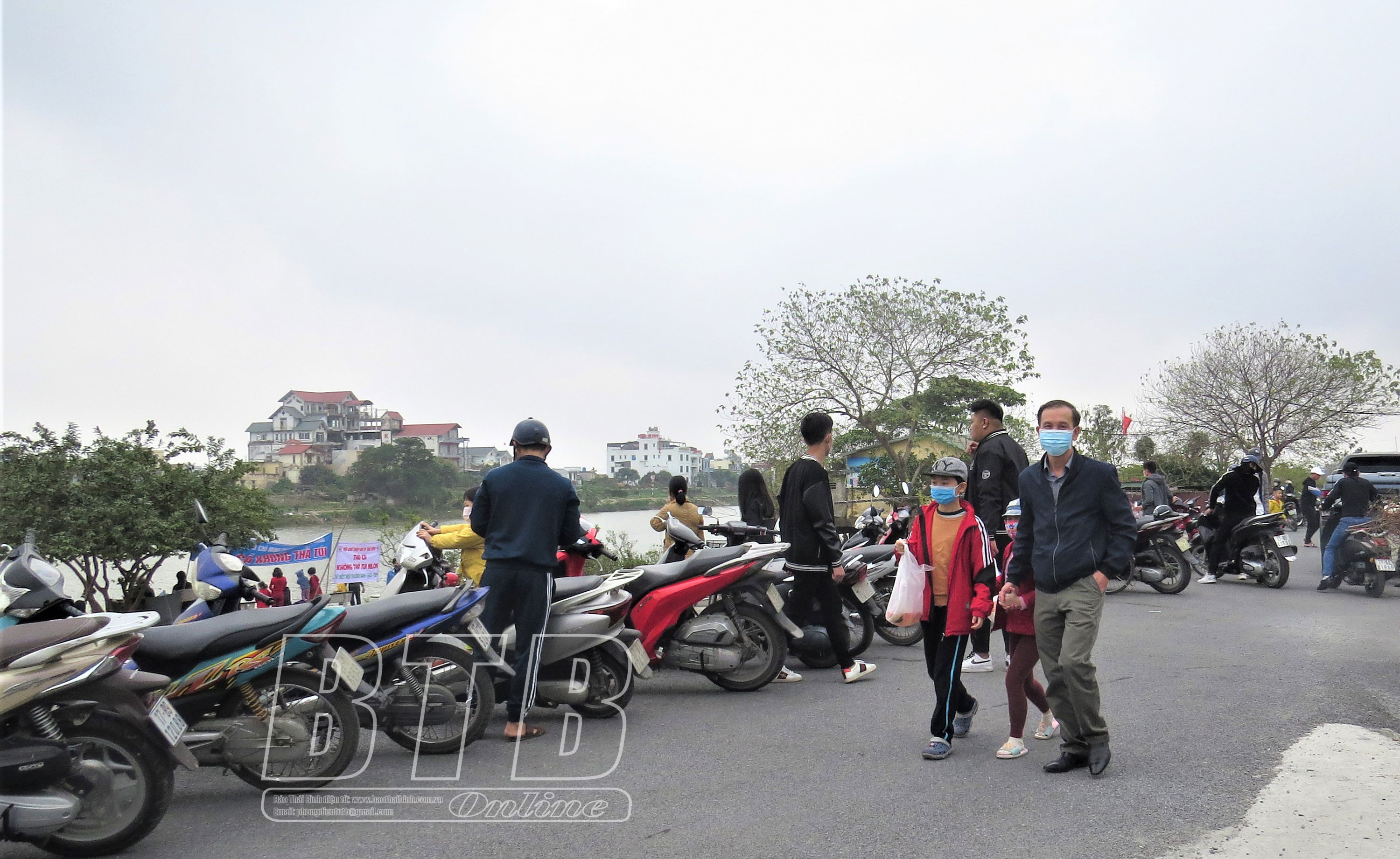 Bờ sông Trà Lý tấp nập người dân đến thả cá tiễn ông Công, ông Táo.