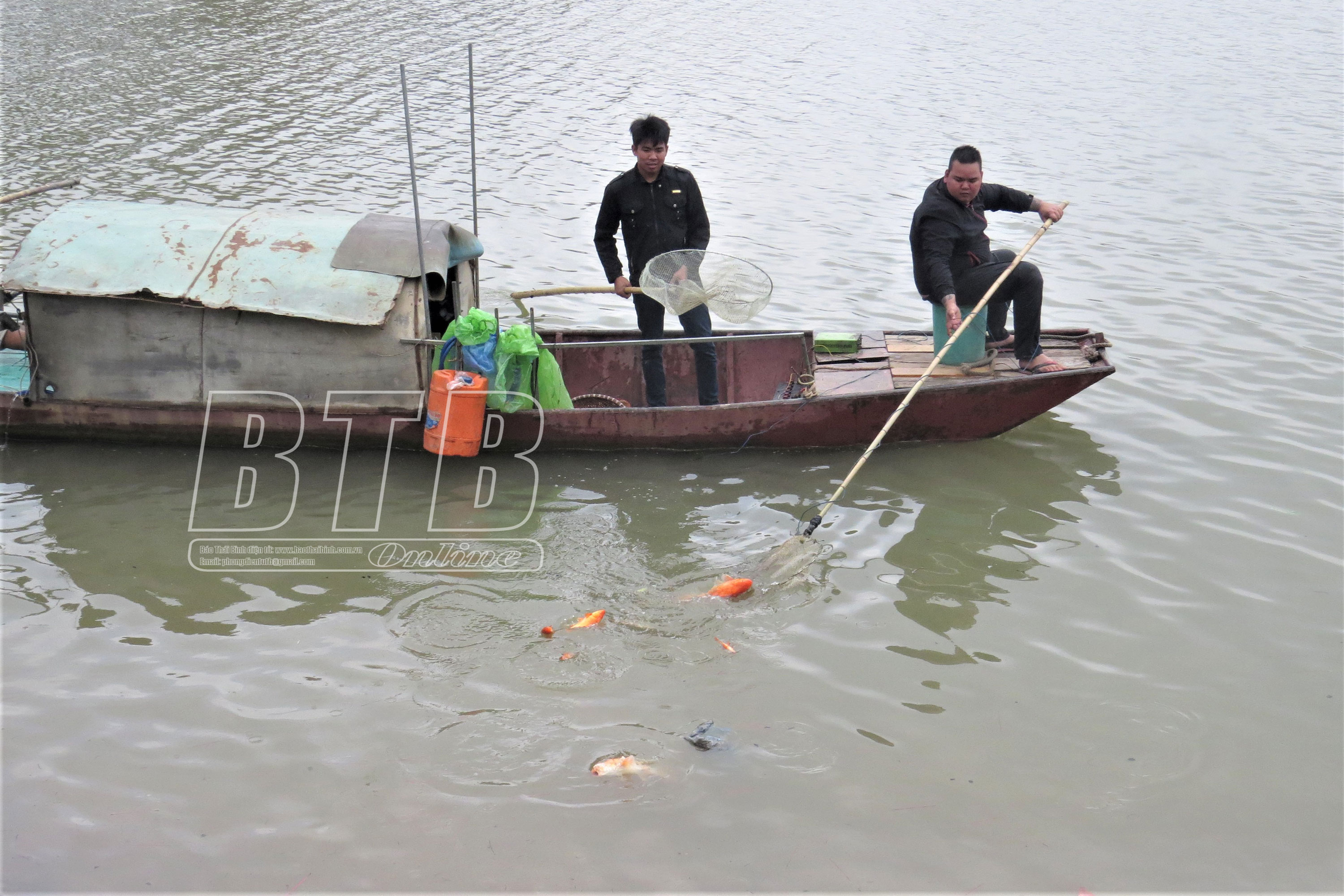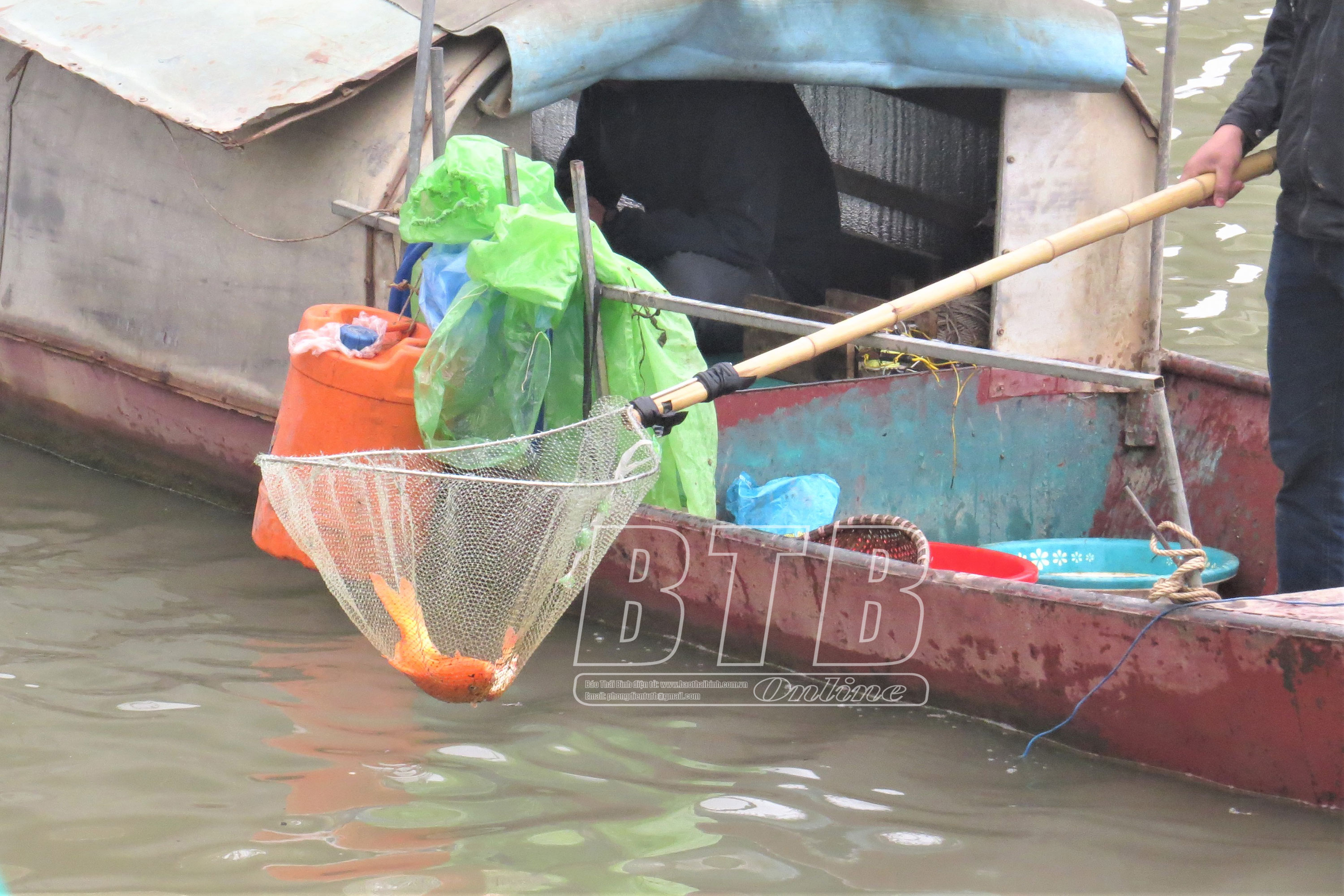 Tuy nhiên, đã có sẵn một đội thuyền túc trực trên sông Trà Lý ngang nhiên vớt cá chép vừa được phóng sinh.