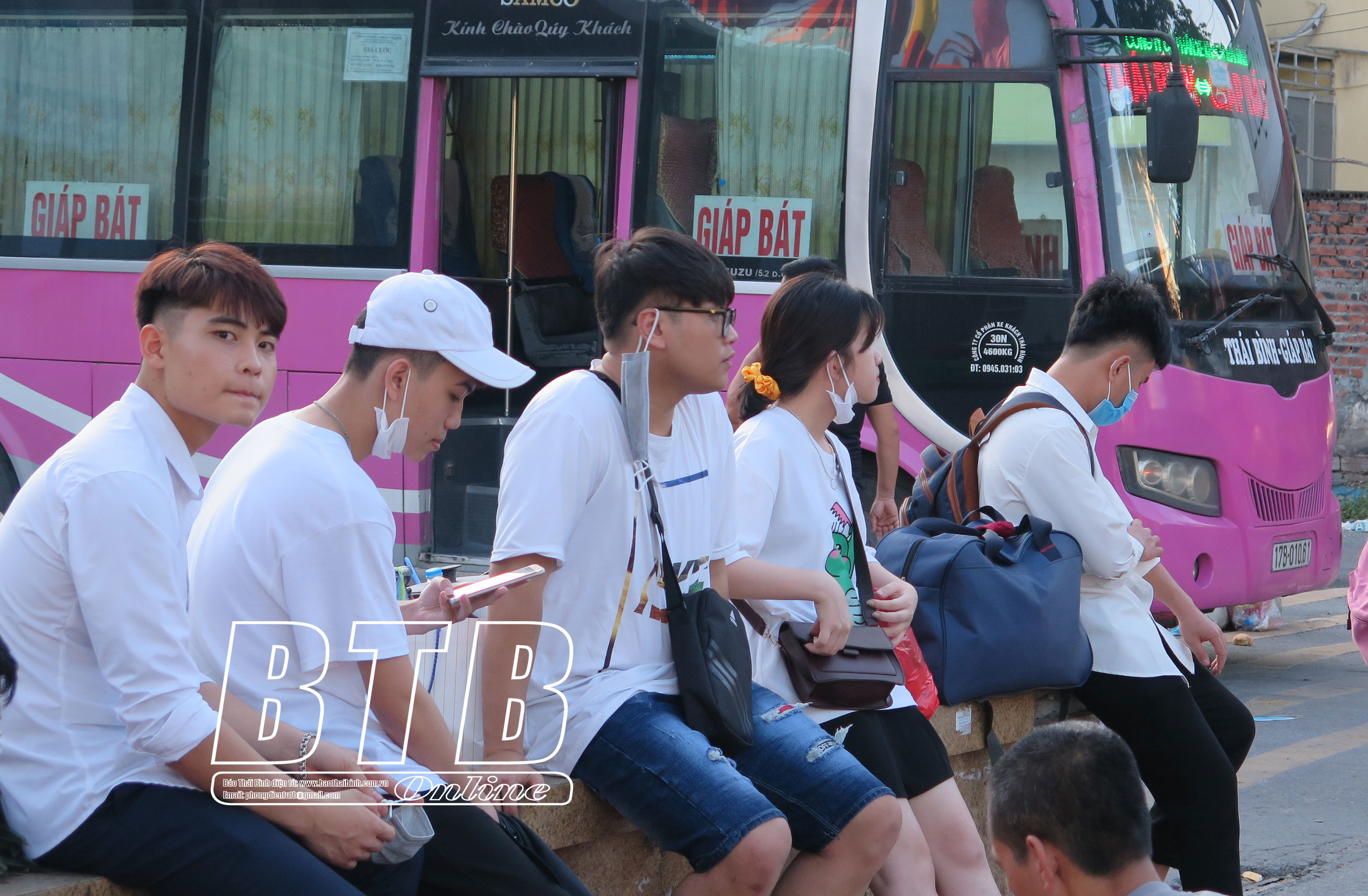 Khu vực Bến xe khách Thái Bình nhiều người “quên” đeo khẩu trang hoặc đeo không đúng cách.
