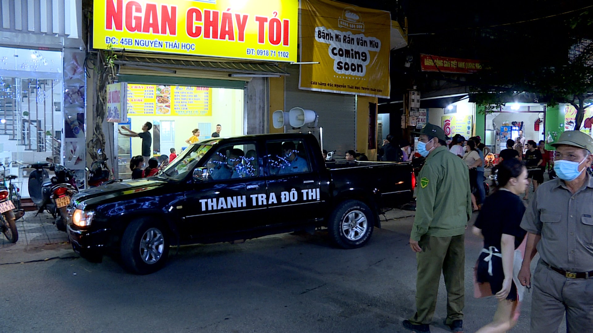 Lực lượng chức năng yêu cầu các quán ăn trên đường Nguyễn Thái Học không lấn chiếm vỉa hè. Nhiều quán vỉa hè tại đường Lê Lợi được yêu cầu chấp hành nghiêm việc kinh doanh, buôn bán, không lấn chiếm vỉa hè, thực hiện nghiêm quy định về phòng, chống dịch Covid-19.