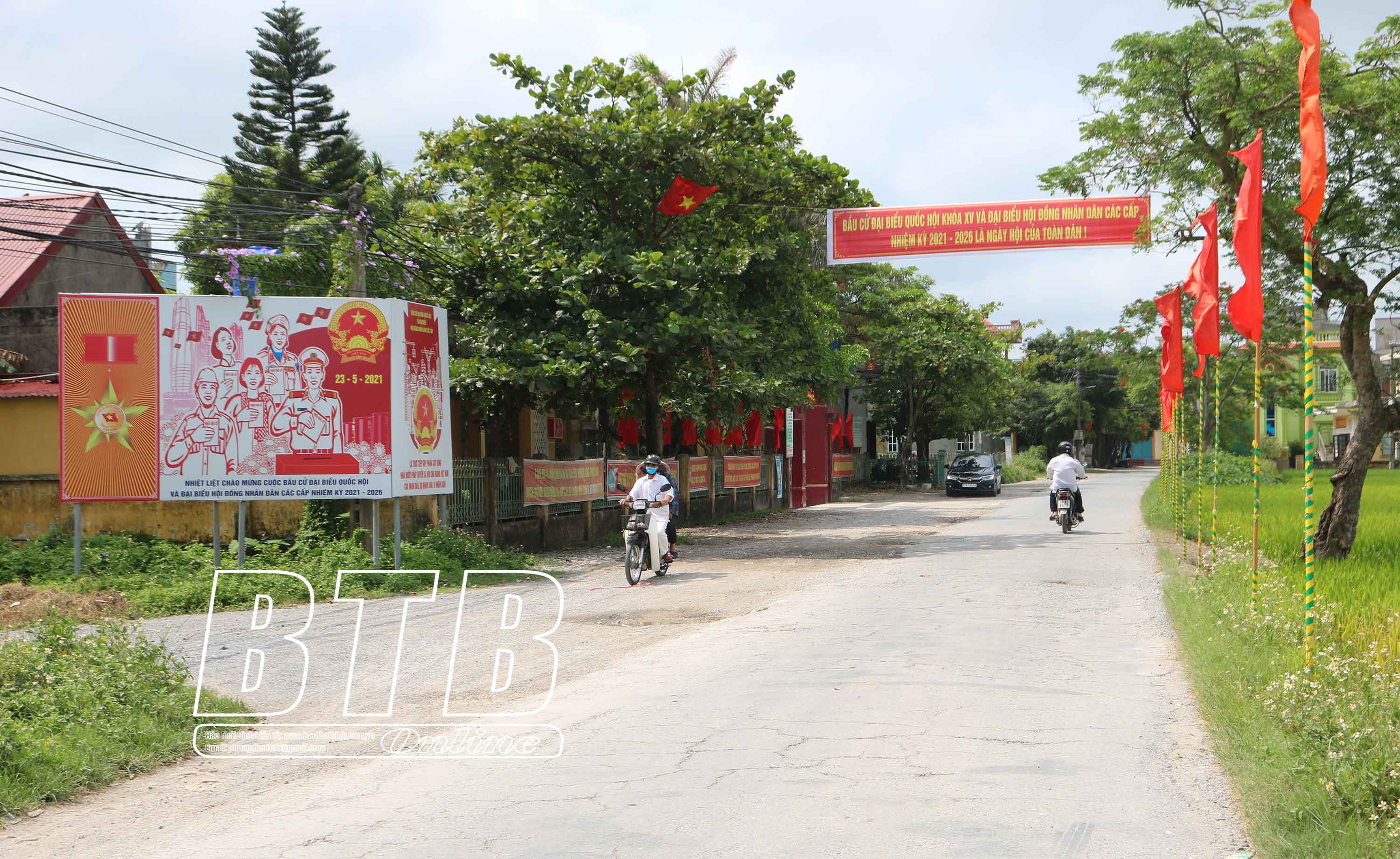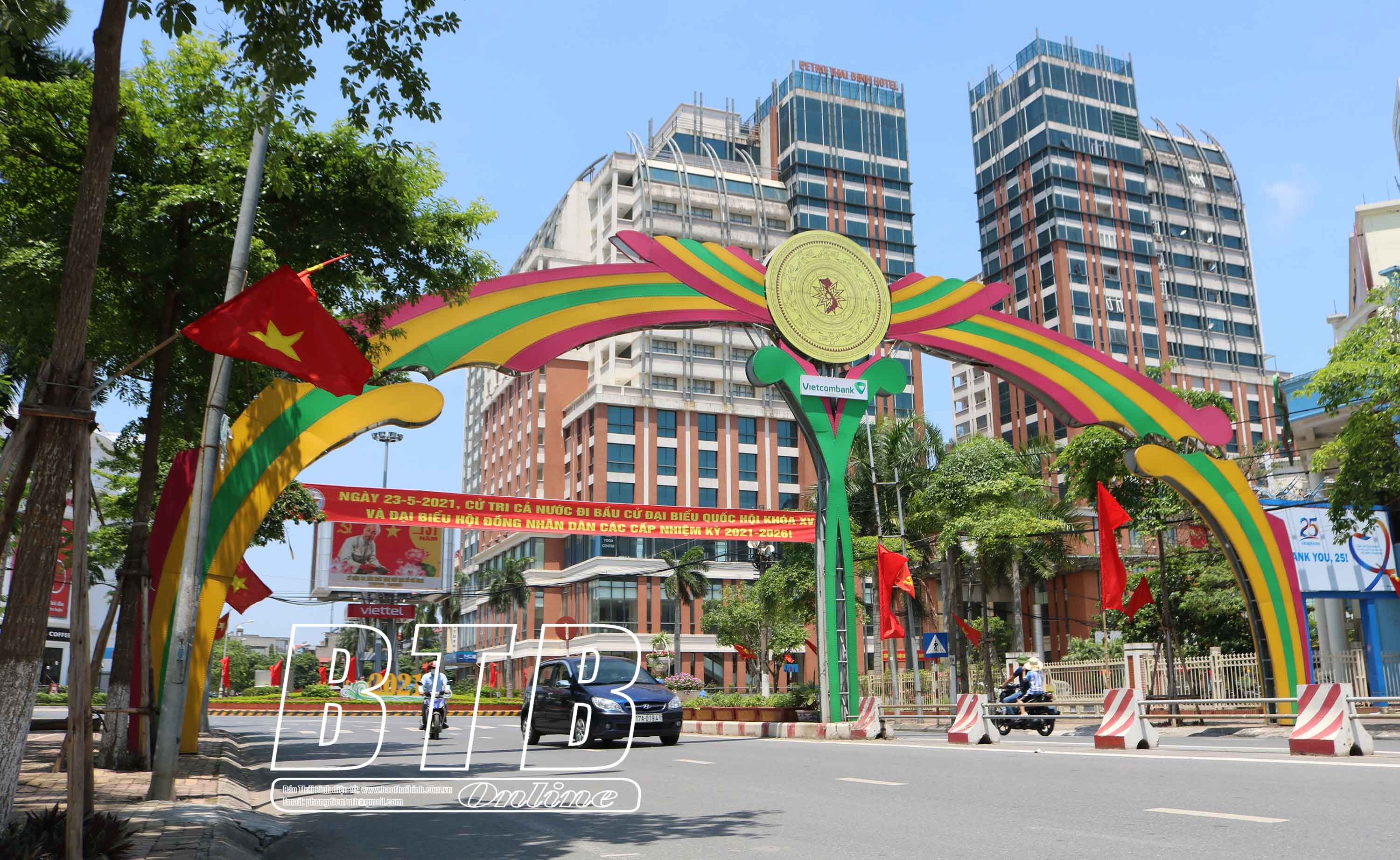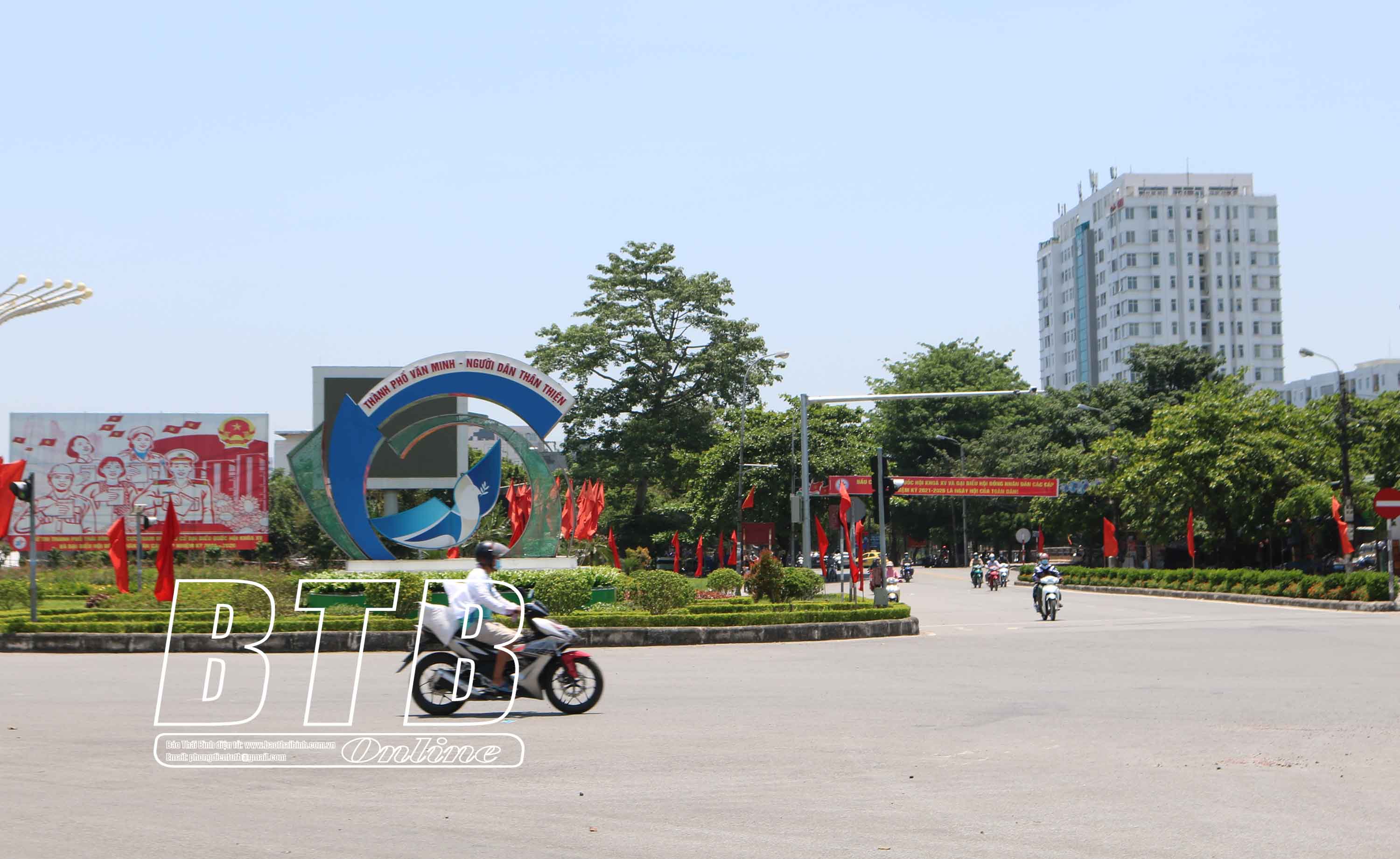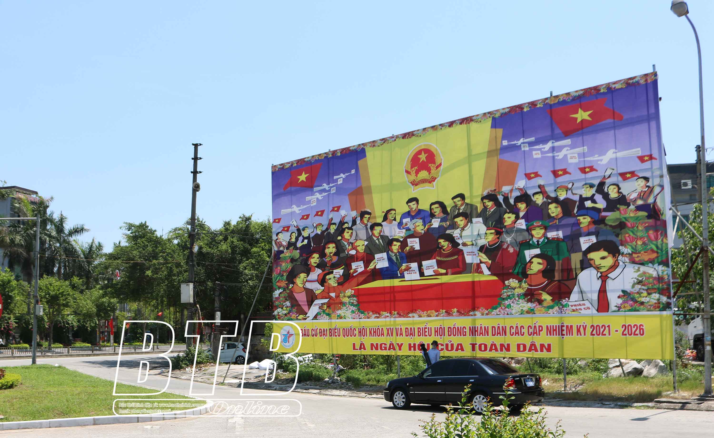 Pano tuyên truyền bầu cử trên đường Trần Thái Tông, thành phố Thái Bình.