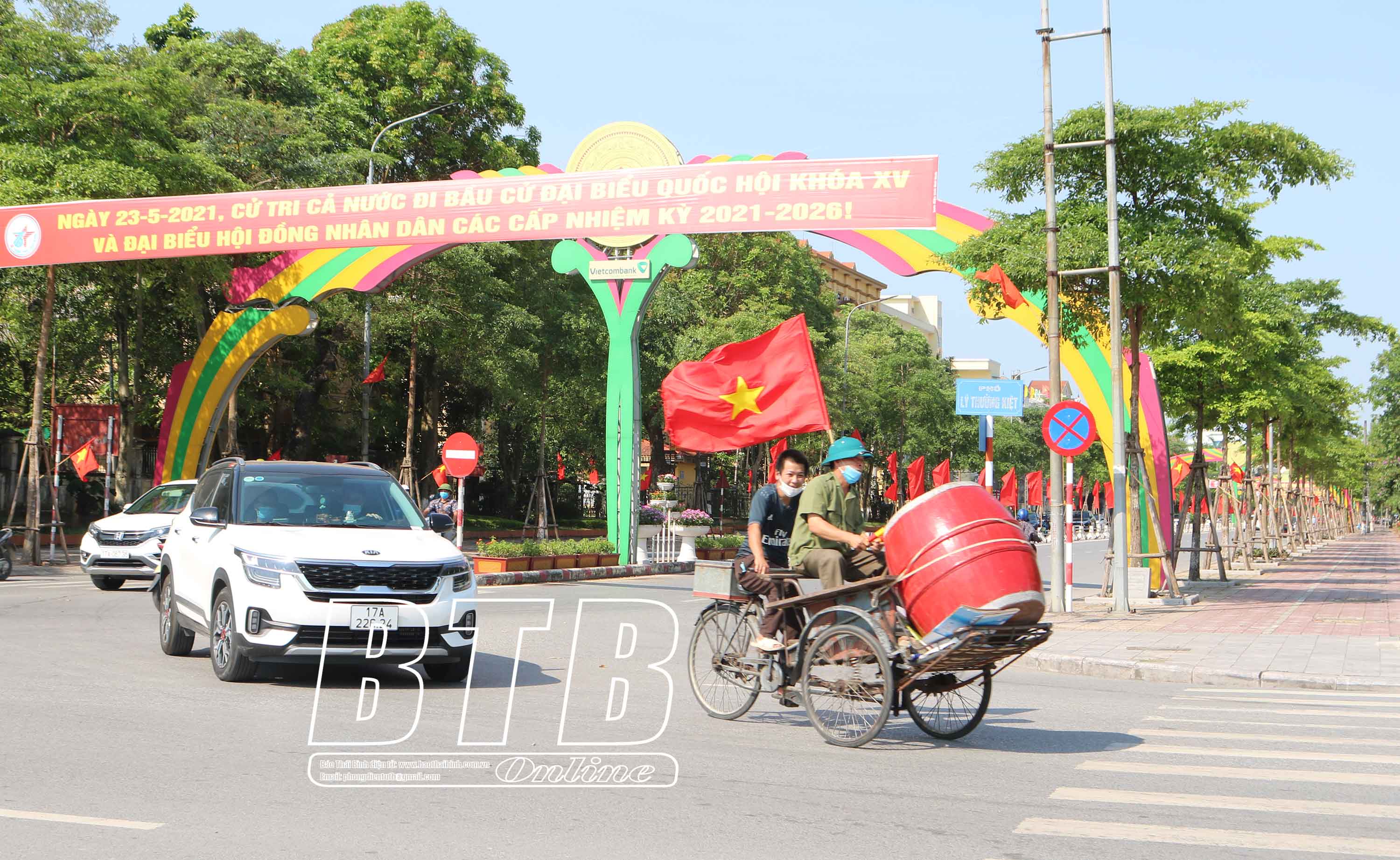Người dân thành phố Thái Bình cổ động chào mừng ngày bầu cử.