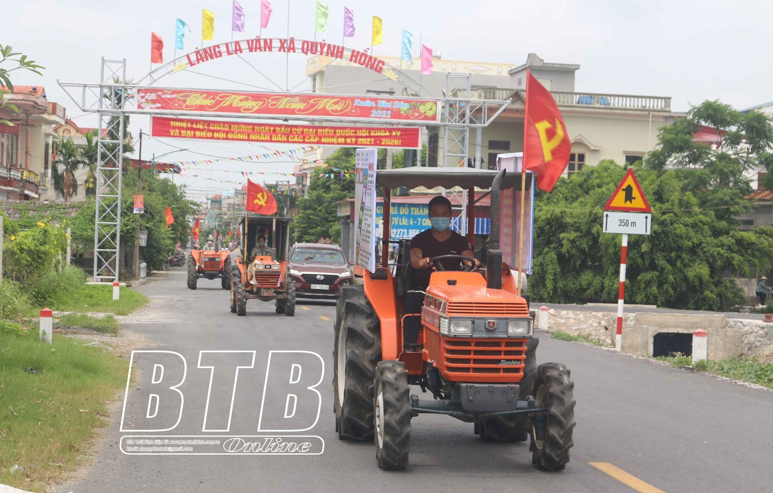 Hội Nông dân huyện Quỳnh Phụ tuyên truyền lưu động phục vụ bầu cử tại các xã, thị trấn.