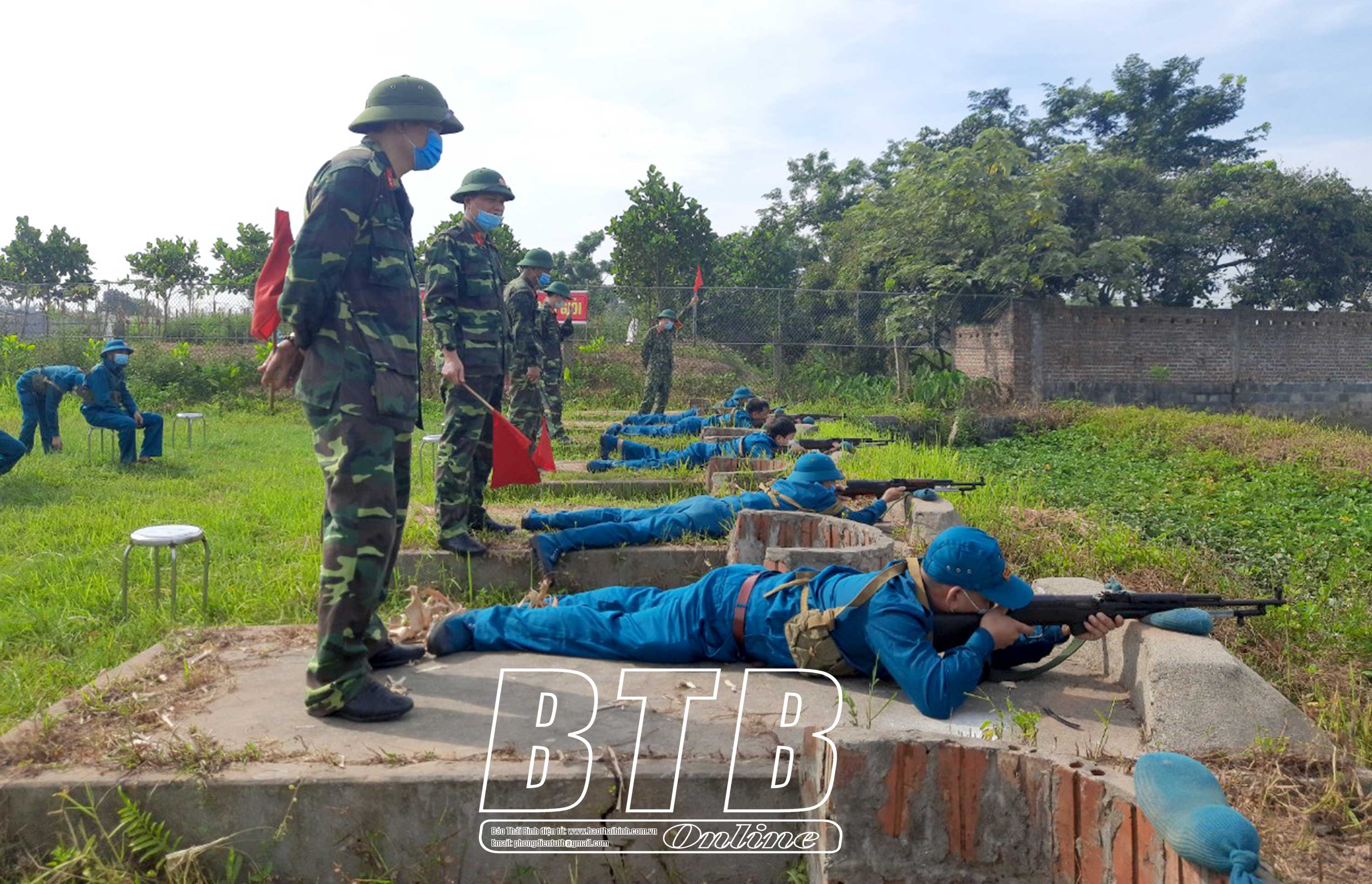 Lực lượng dân quân, tự vệ huyện Vũ Thư tập luyện nâng cao trình độ kỹ, chiến thuật, khả năng sẵn sàng chiến đấu, giữ vững quốc phòng địa phương.