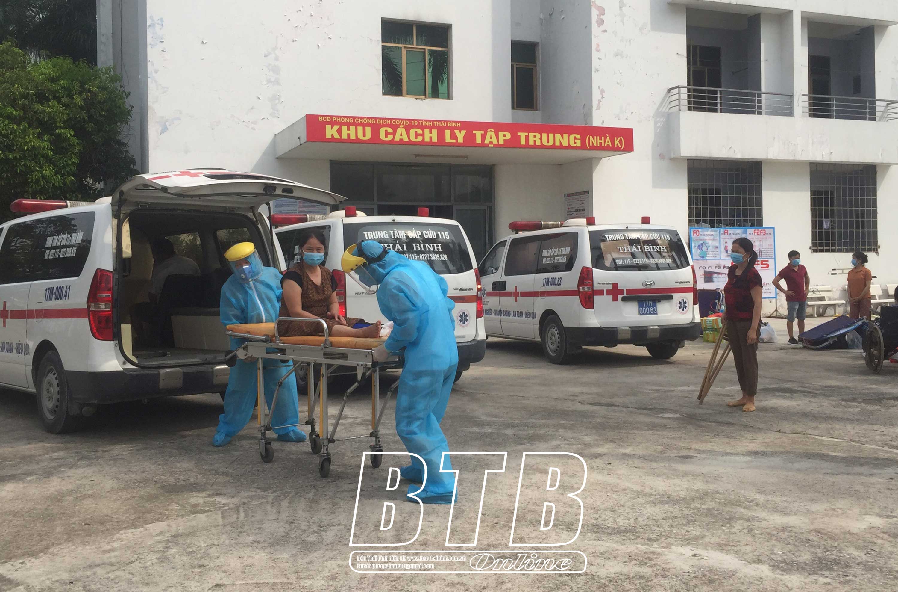 Dưới cái nóng như thiêu đốt nhưng nhân viên y tế của Trung tâm Cấp cứu 115 Thái Bình vẫn bảo đảm trang phục bảo hộ, thực hiện nhiệm vụ vận chuyển các trường hợp đến cách ly góp phần phòng, chống dịch Covid-19.