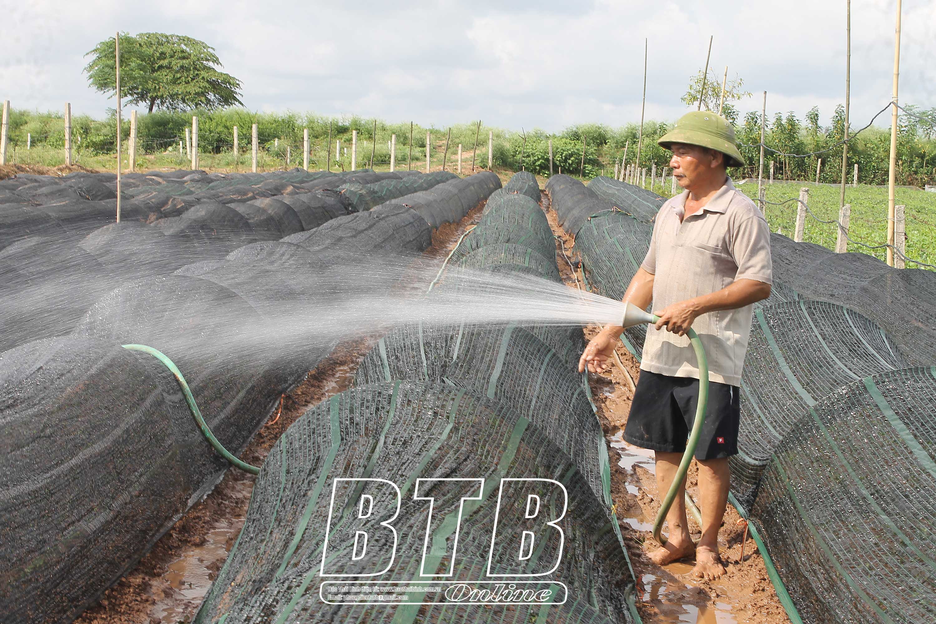 Nông dân xã Việt Hùng, huyện Vũ Thư chủ động bơm tưới nước bảo vệ cây trồng.