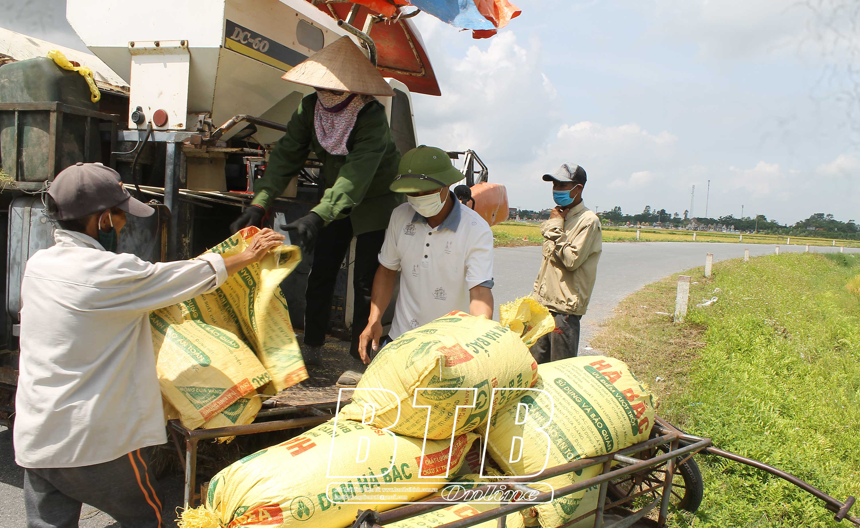 Bất chấp thời tiết nắng nóng, nông dân huyện Vũ Thư hối hả thu hoạch lúa xuân.