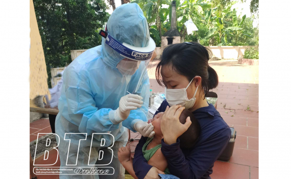 Nhân viên Trung tâm y tế huyện Đông Hưng có mặt kịp thời ở những "điểm nóng" để lấy mẫu xét nghiệm sàng lọc SARS-CoV-2.