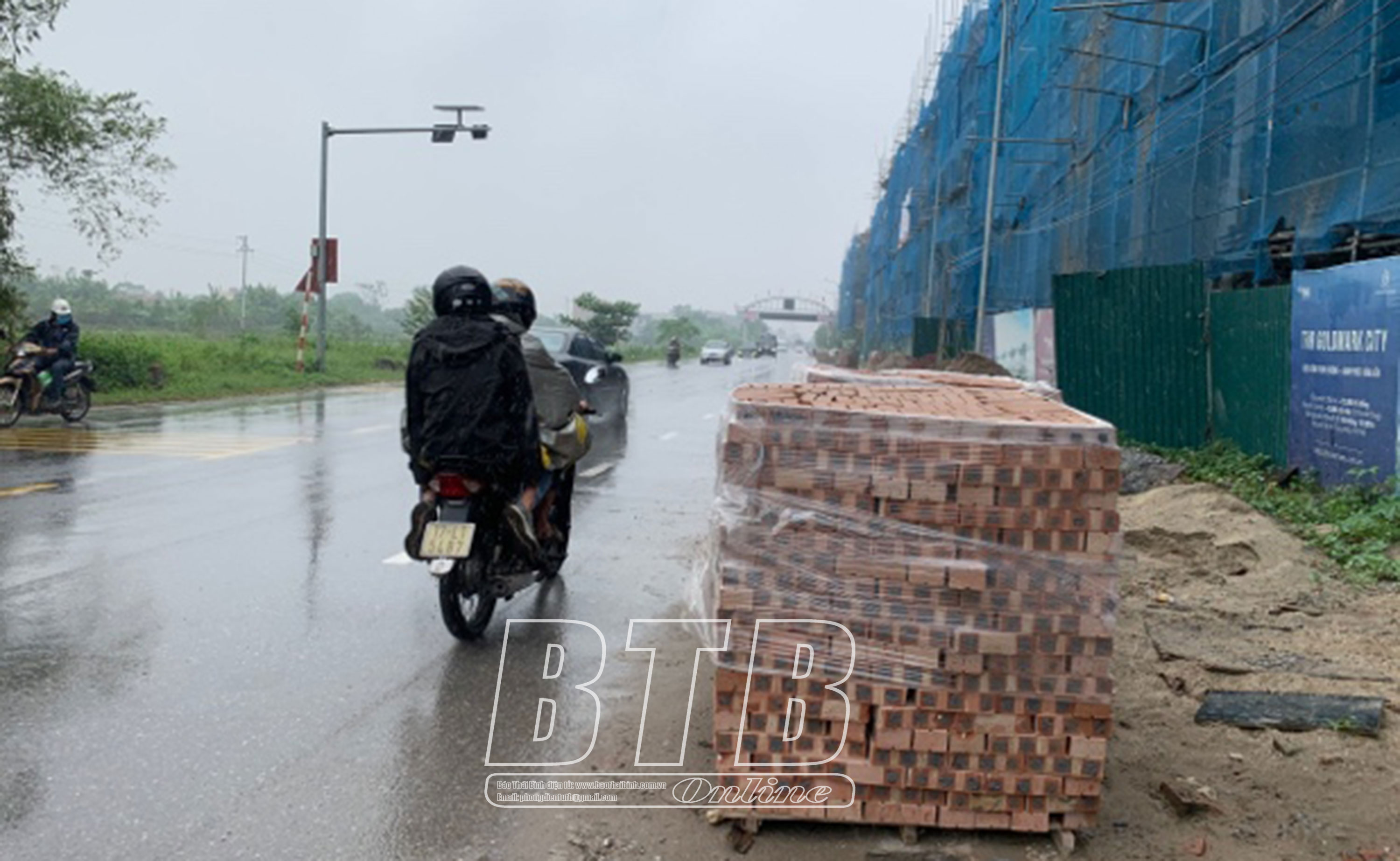 Tập kết vật liệu trên quốc lộ 10 gây mất an toàn giao thông