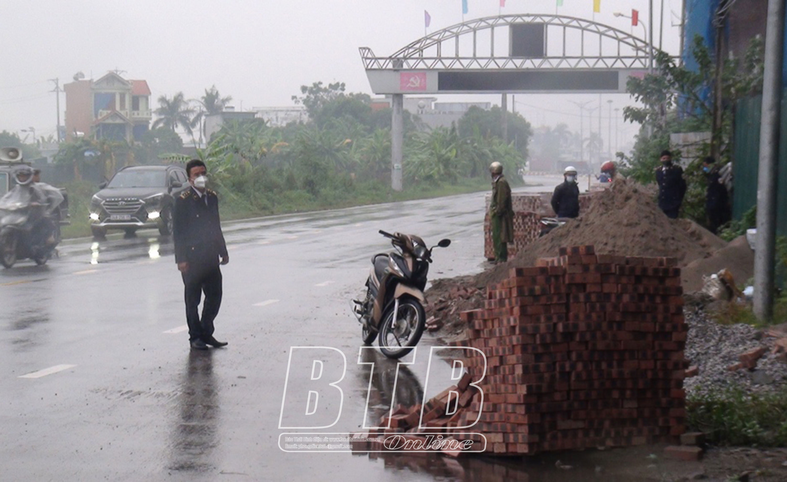 Lực lượng quản lý trật tự đô thị và chính quyền xã Đông Mỹ (thành phố Thái Bình) tiến hành nhắc nhở, yêu cầu đơn vị thi công sớm giải tỏa vi phạm và thực hiện nghiêm các quy định bảo đảm hành lang an toàn giao thông.