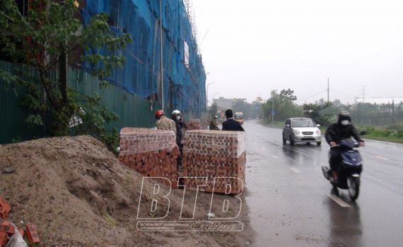 Theo ghi nhận của phóng viên, đây là khu vực thi công khu đô thị Đông Mỹ, nằm ngay sát quốc lộ 10. Đáng chú ý, vật liệu xây dựng được tập kết tràn lan nhưng không hề có hệ thống biển báo, rào chắn, căng dây bảo vệ…cảnh báo người và phương tiện tham gia giao thông qua khu vực trên cần làm chủ tốc độ, chú ý quan sát, tránh tai nạn đáng tiếc xảy ra.
