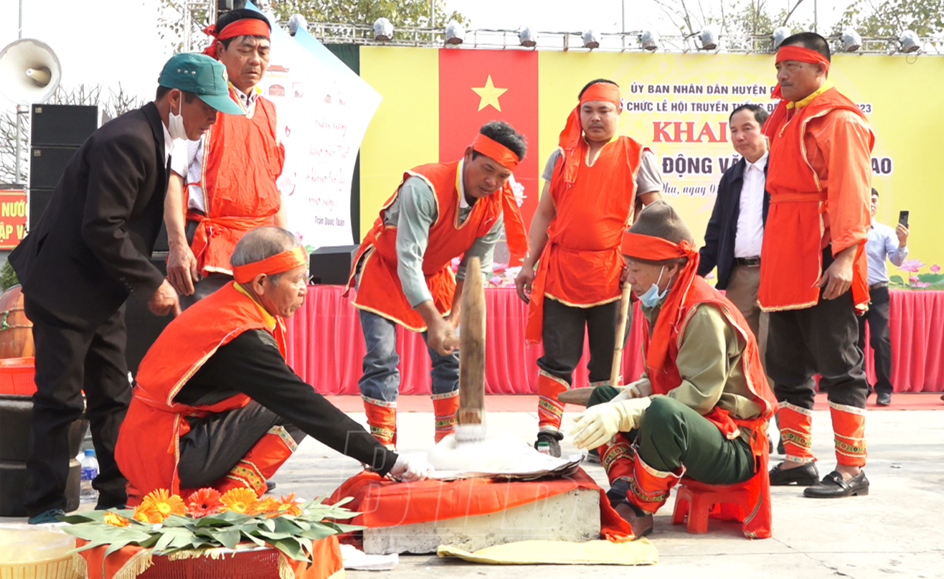 Trong lễ hội truyền thống đền A Sào, cuộc thi giã bánh giầy thu hút đông đảo người dân ở đủ lứa tuổi, từ các bậc cao niên đến các thanh niên trai tráng tham gia.Kết thúc cuộc thi, các đội thi dâng bánh dày tế lễ Đức Thánh Trần.