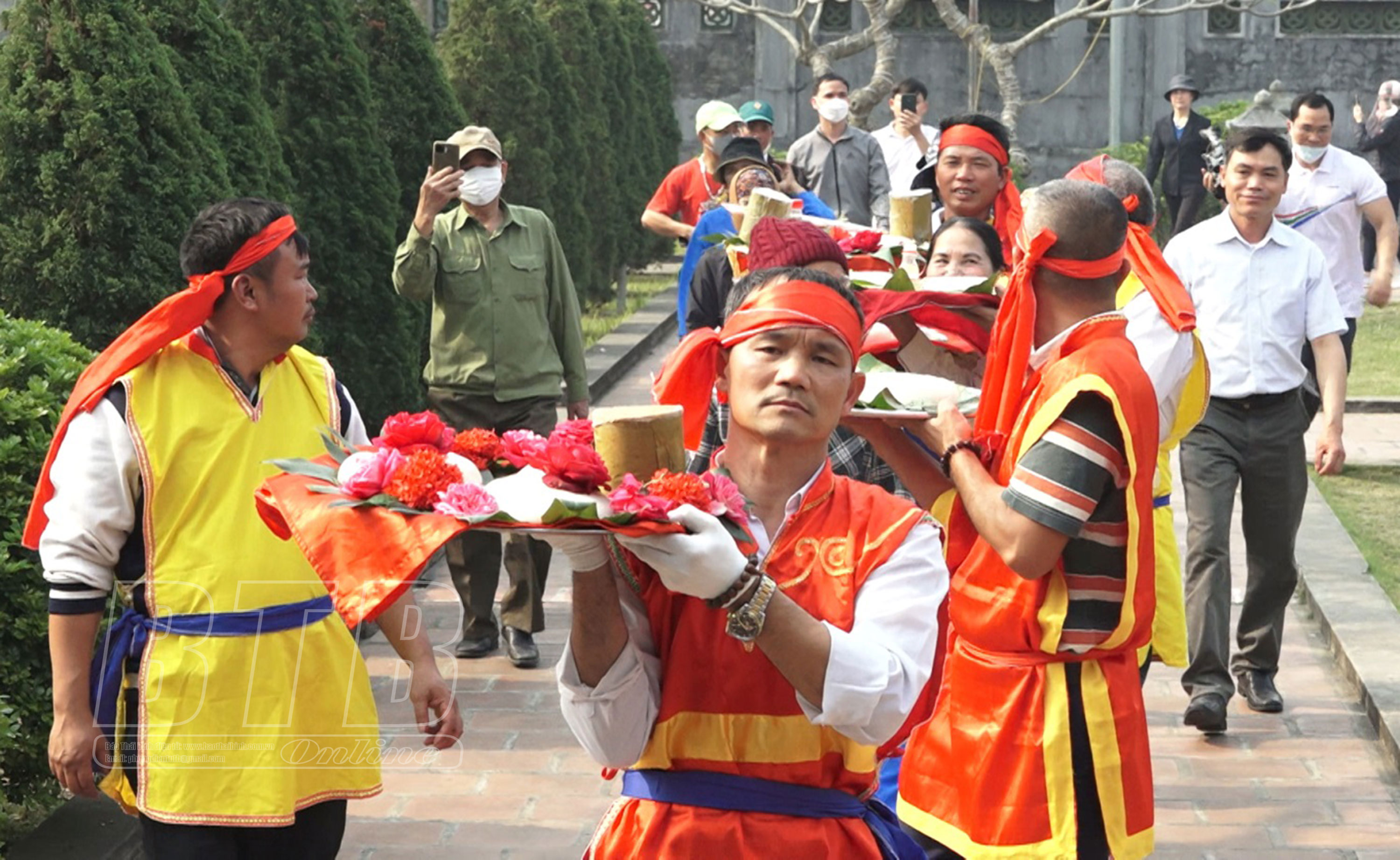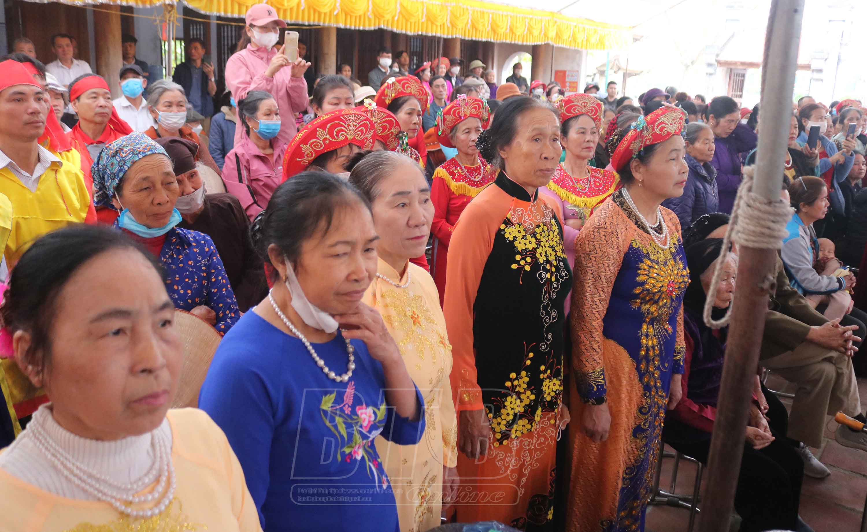 Đoàn lễ rước bộ của cán bộ, nhân dân các thôn của xã An Thái trước giờ khai mạc lễ hội.