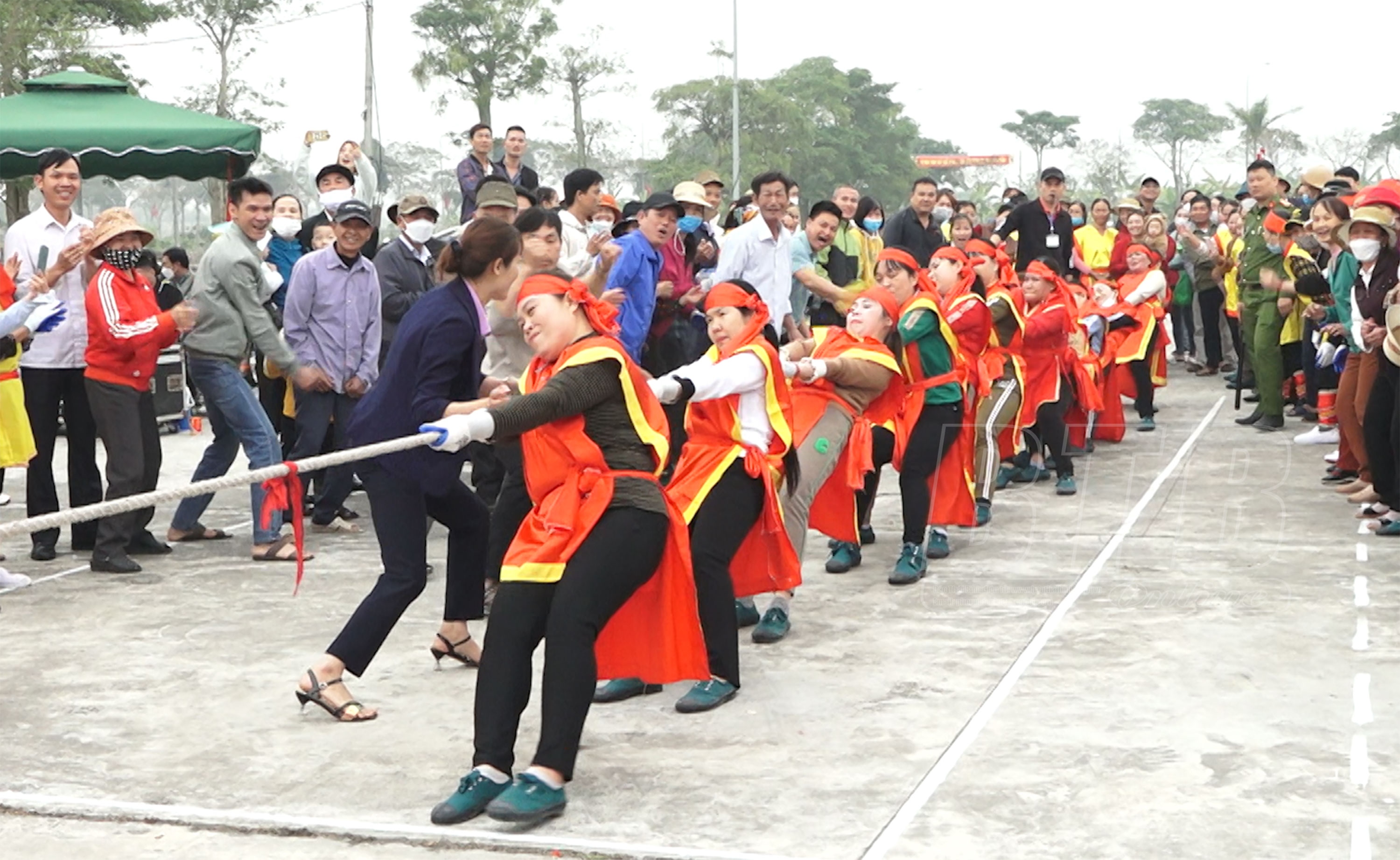 Cùng với thi giã bánh giầy, các đội thi tại lễ hội truyền thống đền A Sào tổ chức giải kéo co dành cho phái nữ nhân kỷ niệm ngày Quốc tế Phụ nữ (8/3).Ban tổ chức tặng hoa và trao thưởng cho các đội đạt giải.