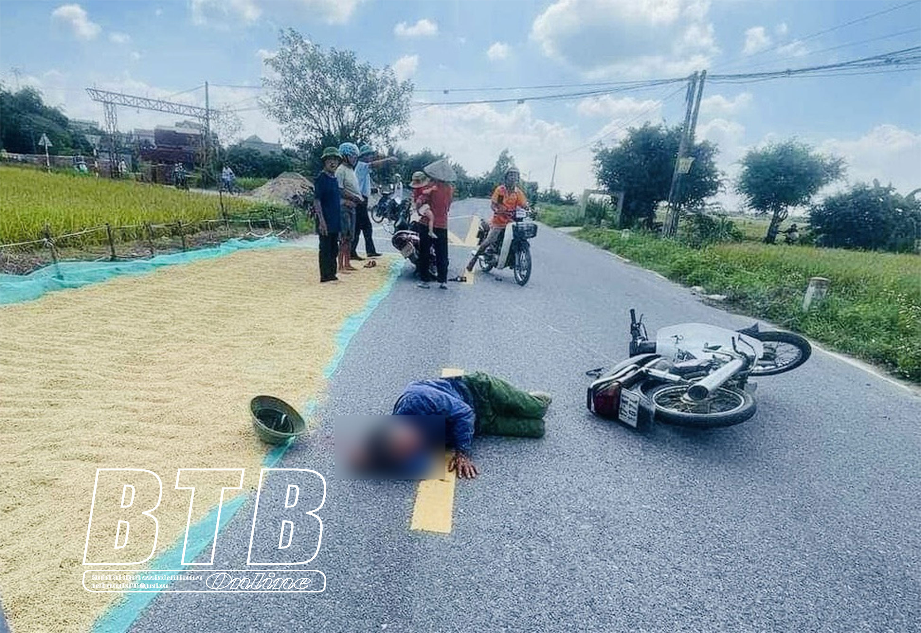 Vụ tại nạn xe máy tại xã Tây Đô (Hưng Hà), nguyên nhân chính do người dân lấn chiếm lòng đường để phơi thóc.