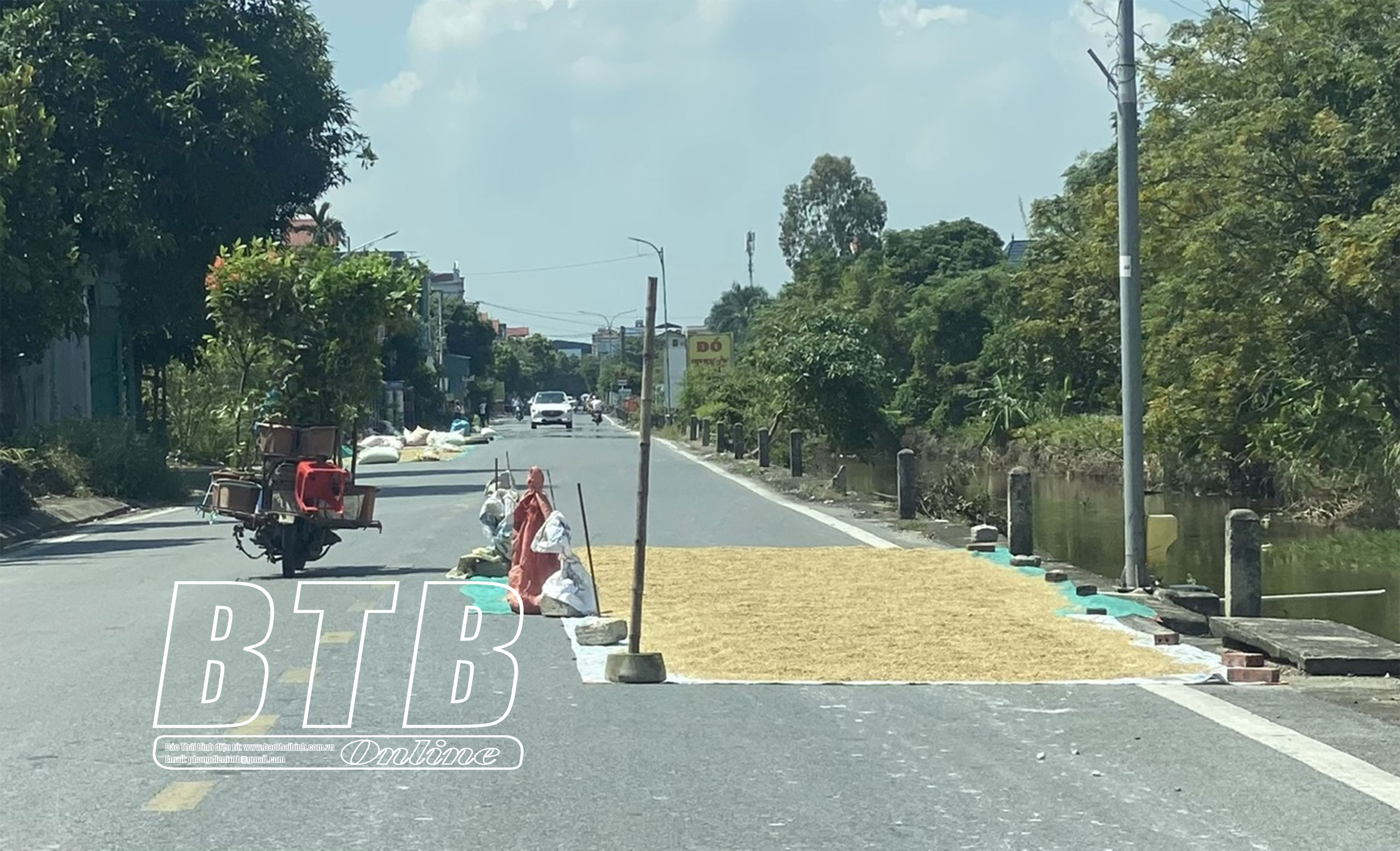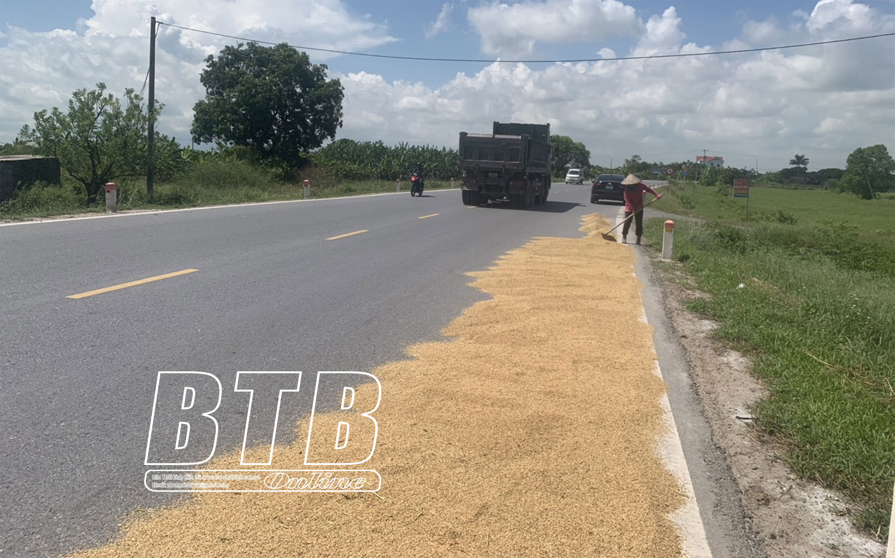 Tại huyện Thái Thụy mặc dù mới bước vào đầu vụ thu hoạch lúa mùa nhưng ở một số tuyến đường giao thông trong huyện một số người dân tập kết, phơi thóc, đốt rơm, rạ trên đường làm cản trở giao thông, che khuất tầm nhìn, làm tăng nguy cơ gây tai nạn giao thông và ô nhiễm môi trường.