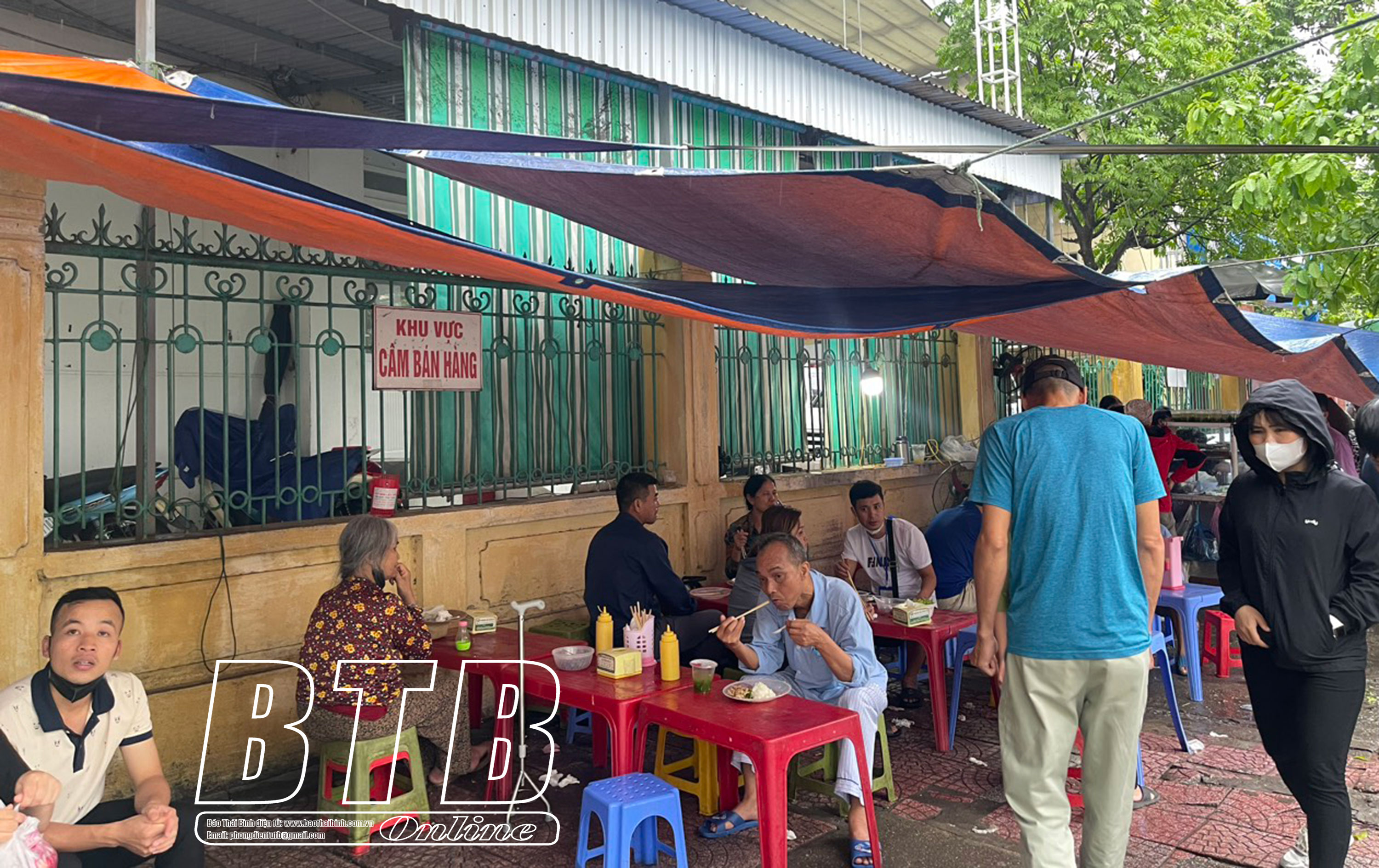 Hộ kinh doanh căng bạt, kê bàn ghế để bán hàng ăn ngay tại điểm có biển “khu vực cấm bán hàng”.