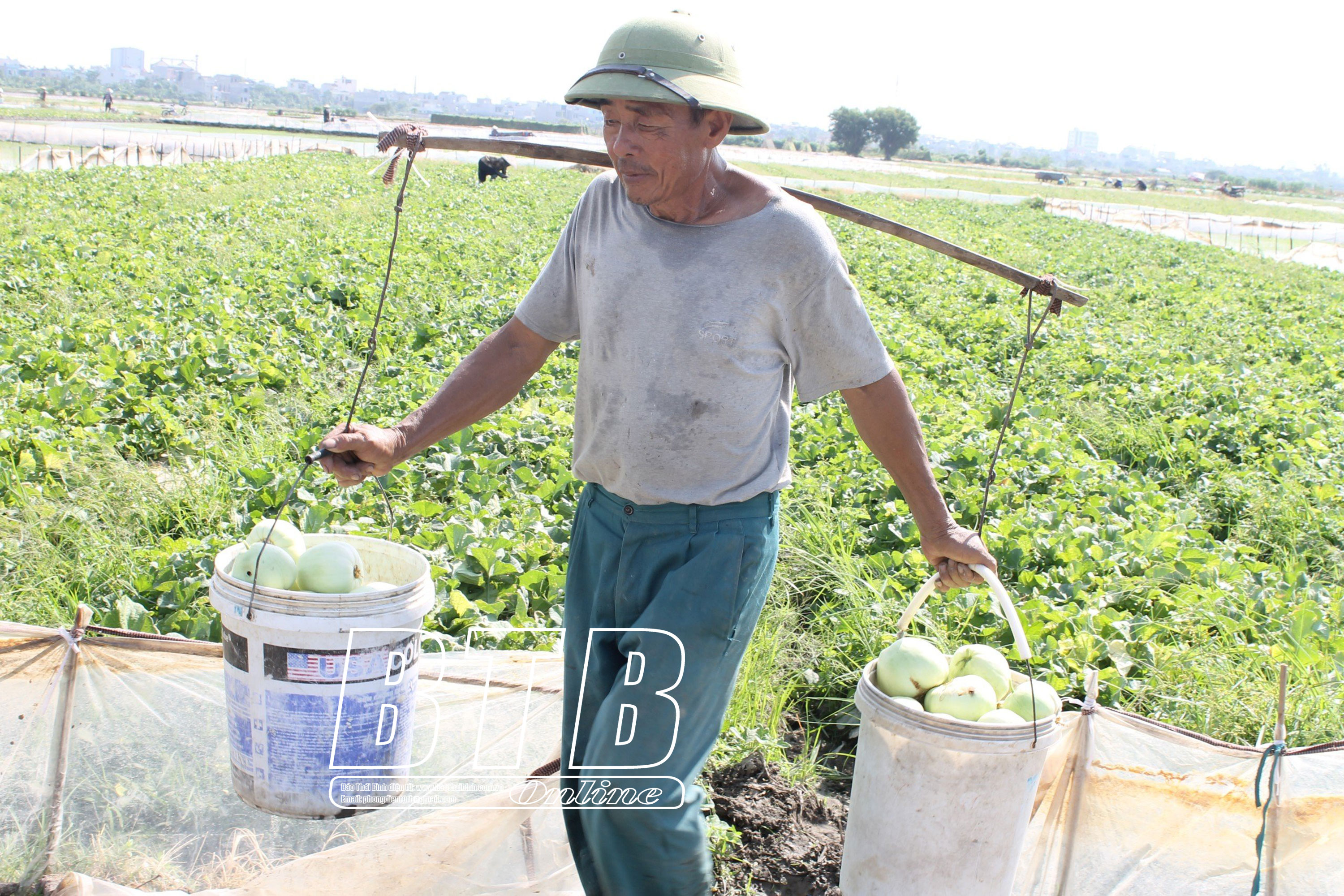 Người nông dân tranh thủ thu hoạch rau, quả đang mùa được giá.