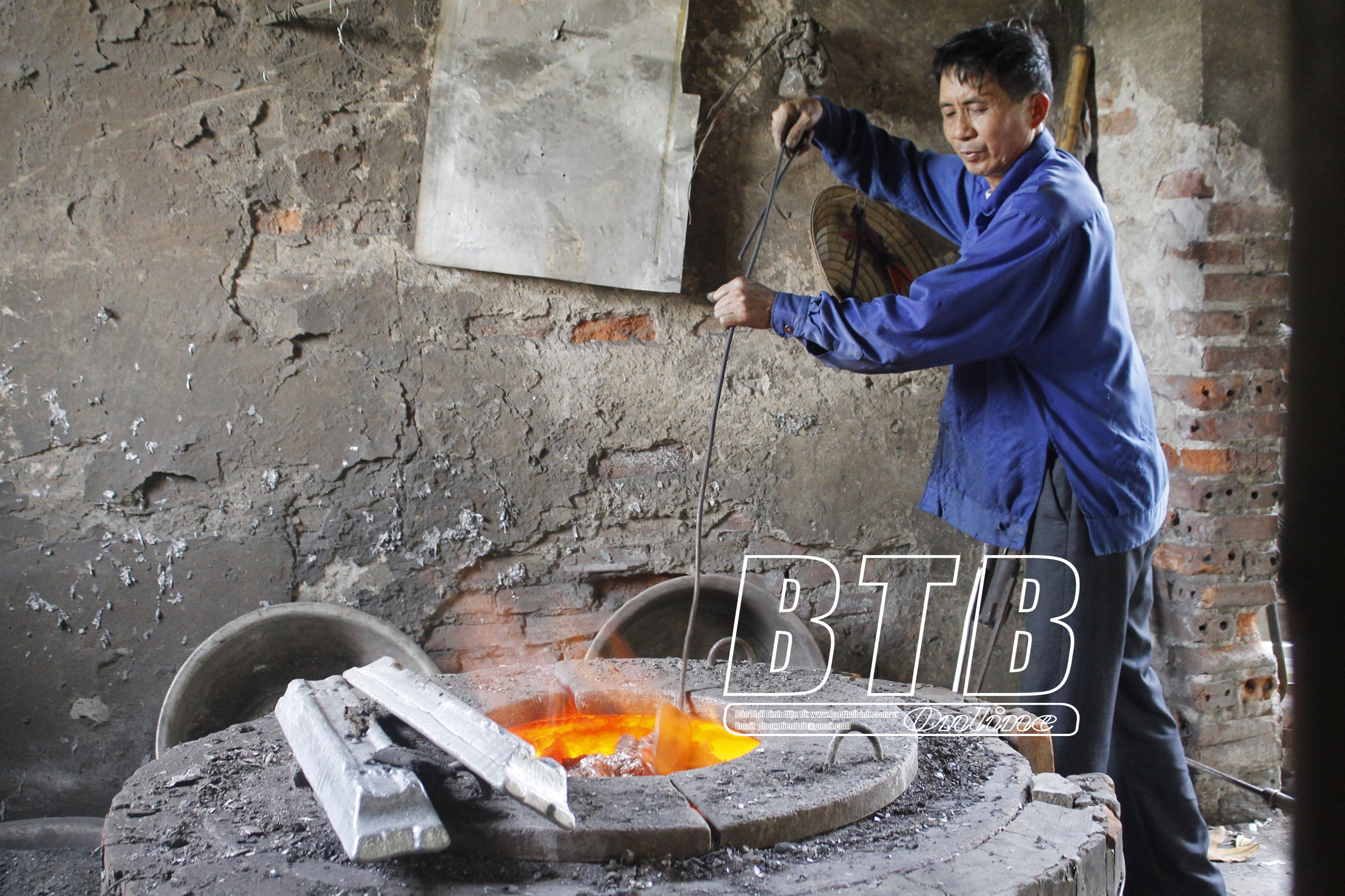 Thợ đúc nhôm xã Vũ Hội (Vũ Thư) vẫn làm việc bên bếp lò.