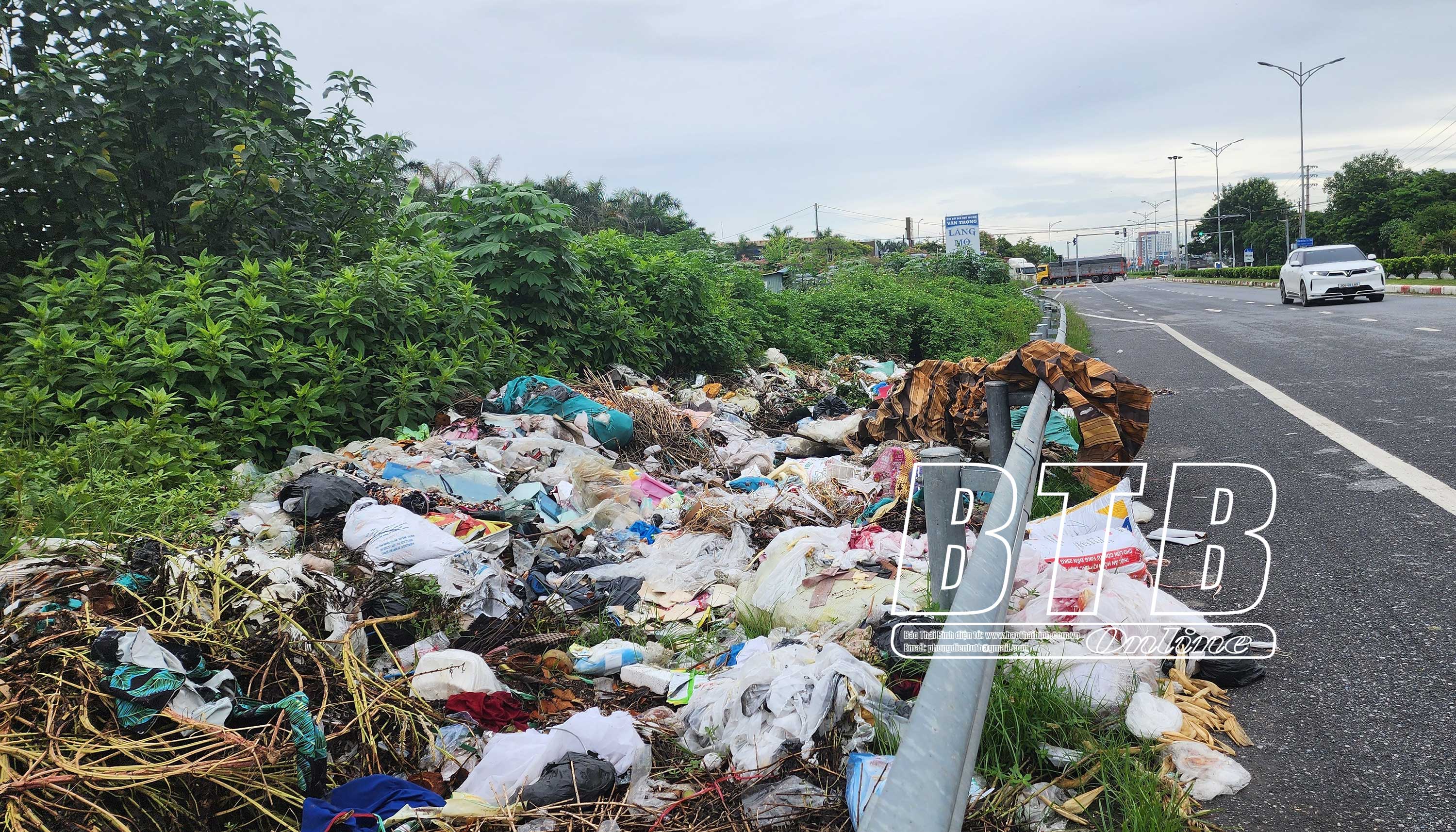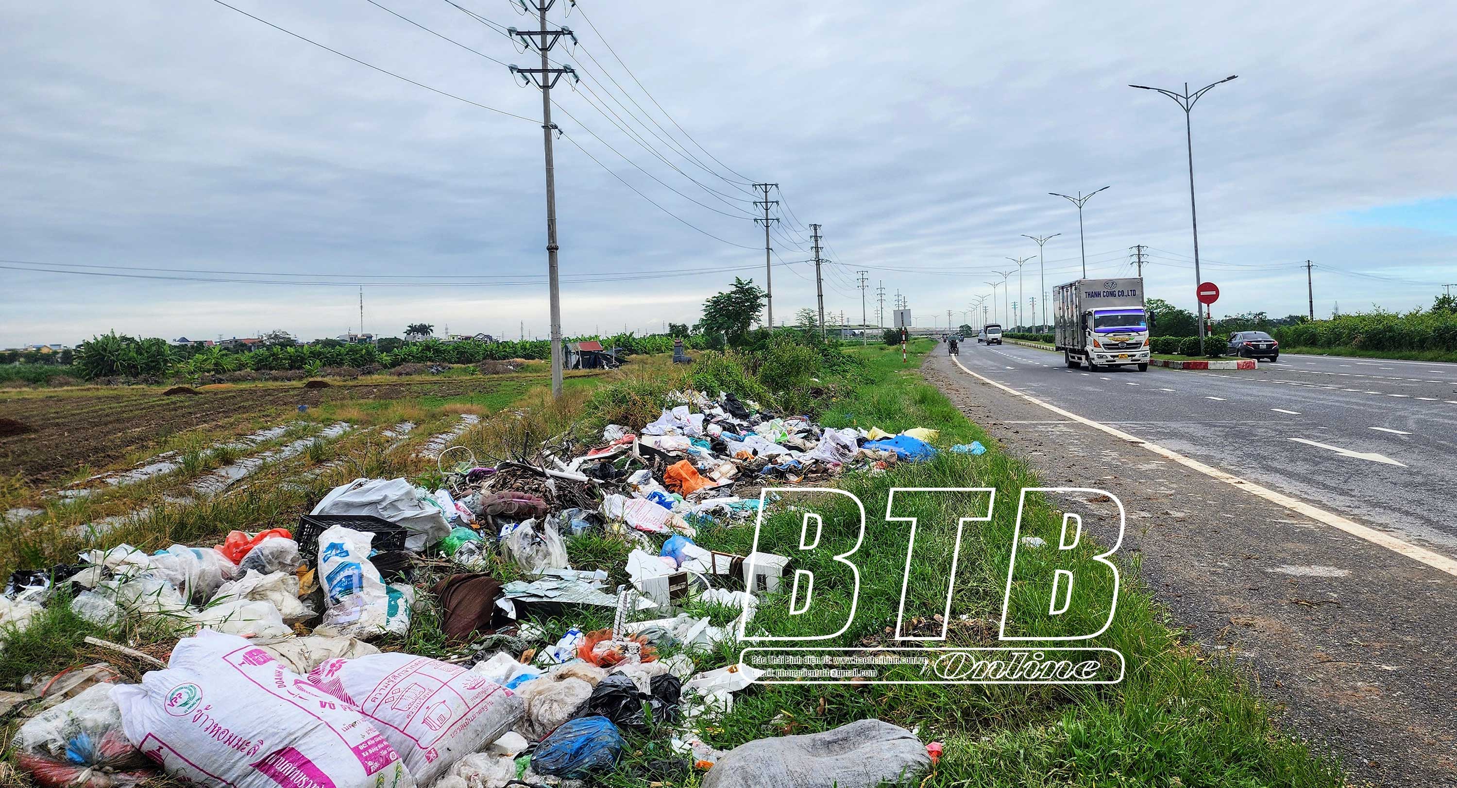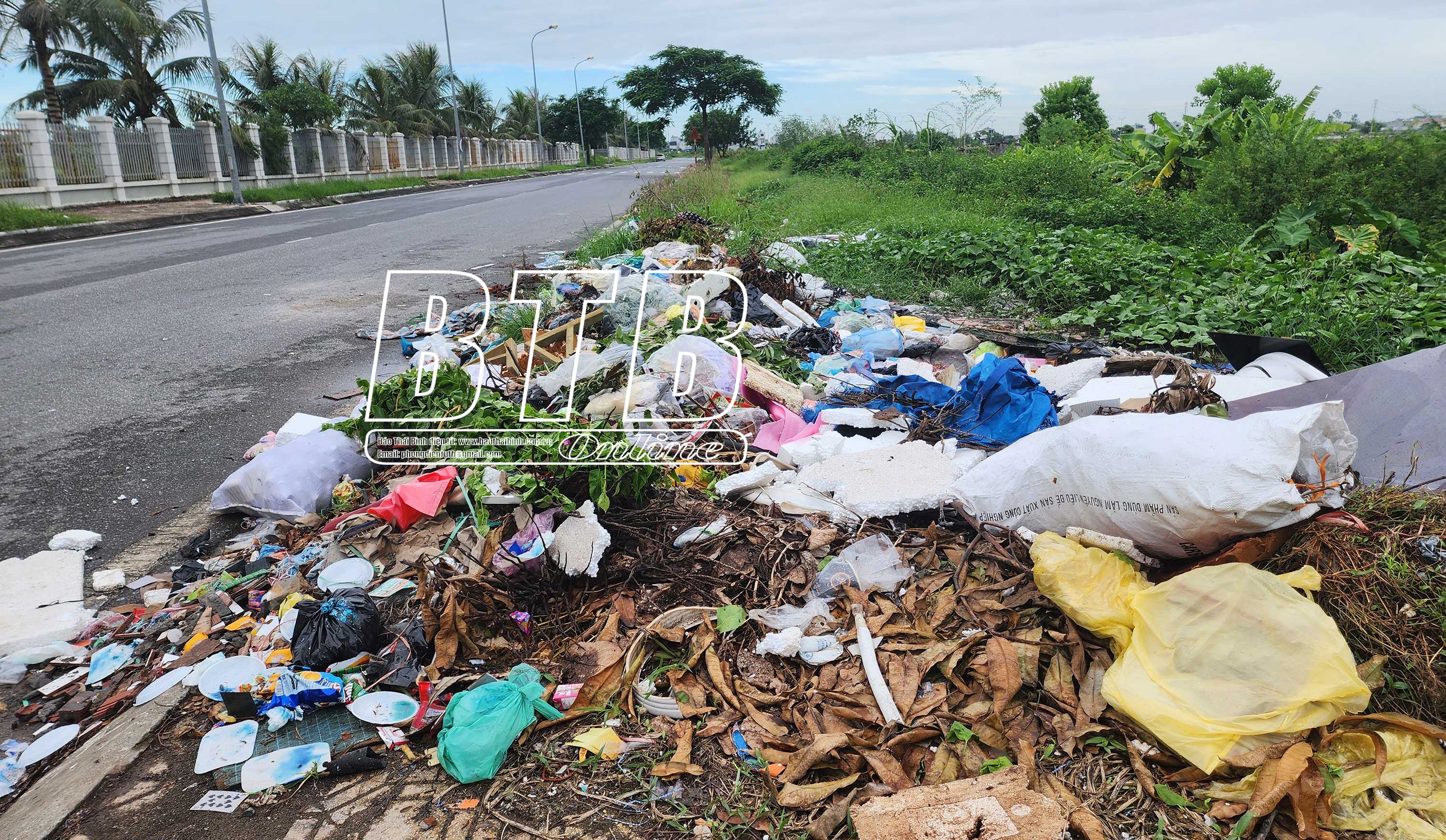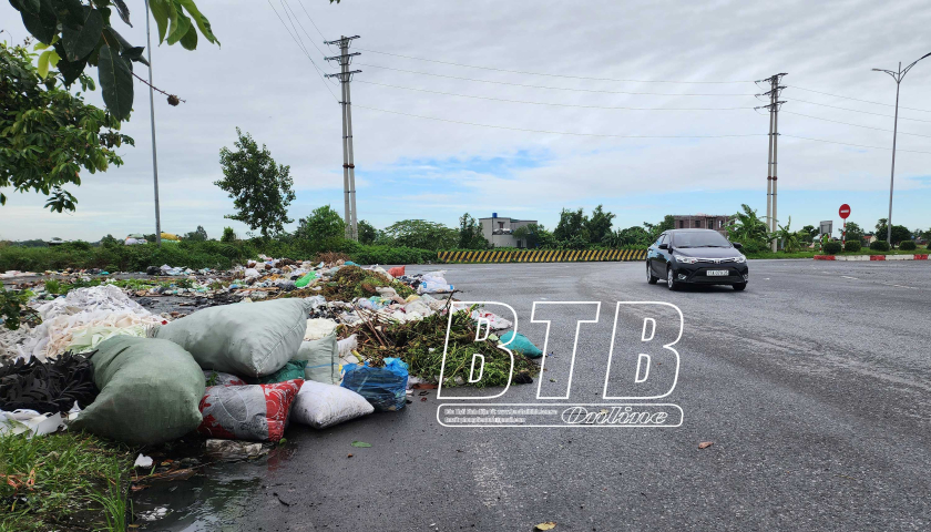 Bãi rác tự phát trên đường vành đai phía Nam đoạn qua xã Vũ Lạc.