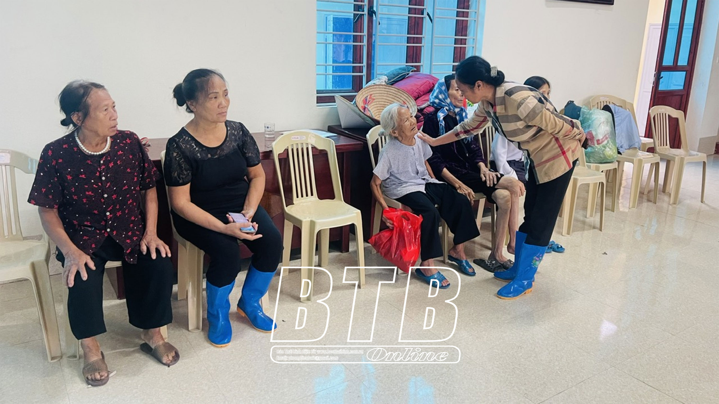 Các hộ dân thôn Tân Hòa, xã Tân Lễ được tránh trú an toàn tại nhà văn hóa thôn.