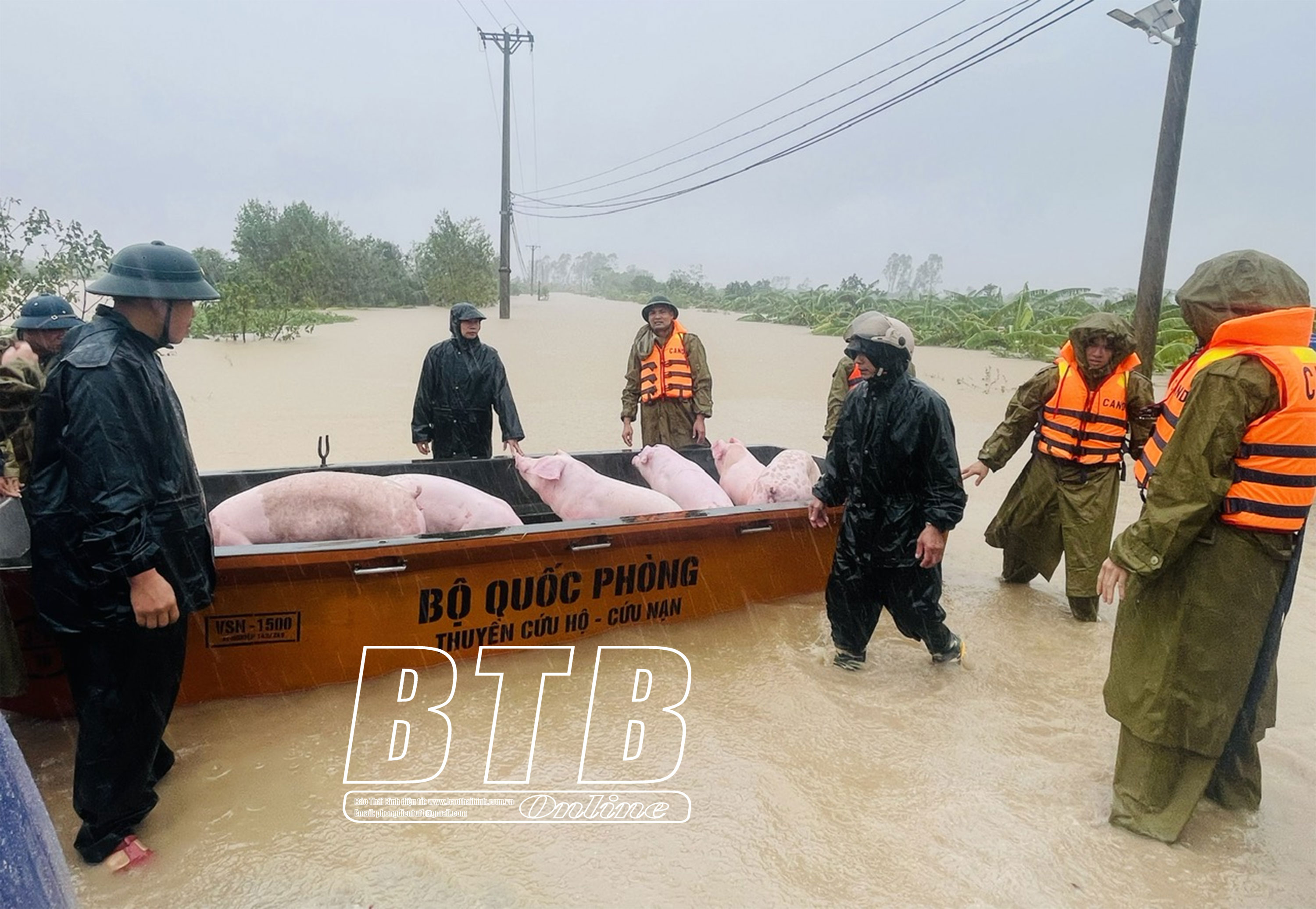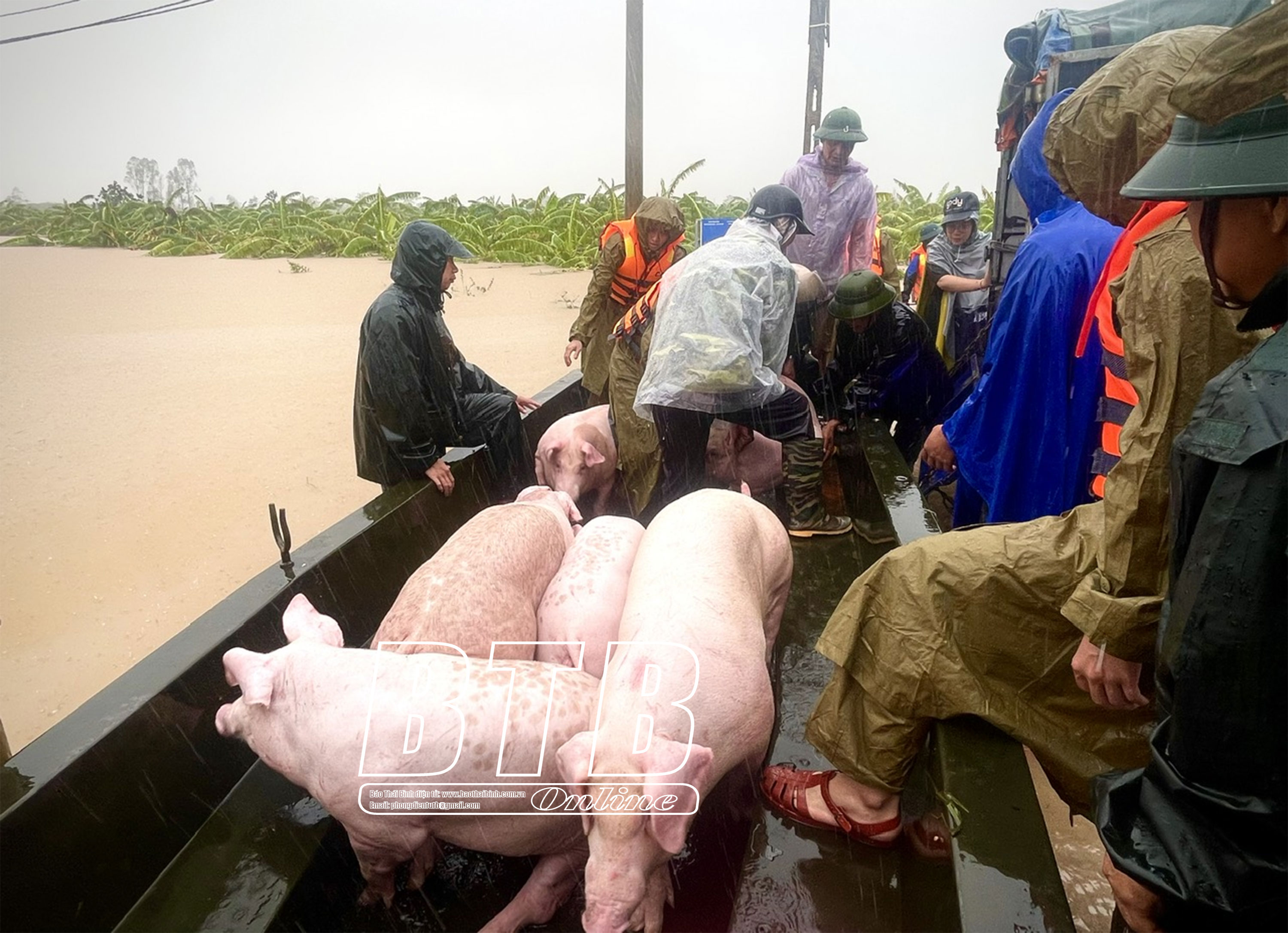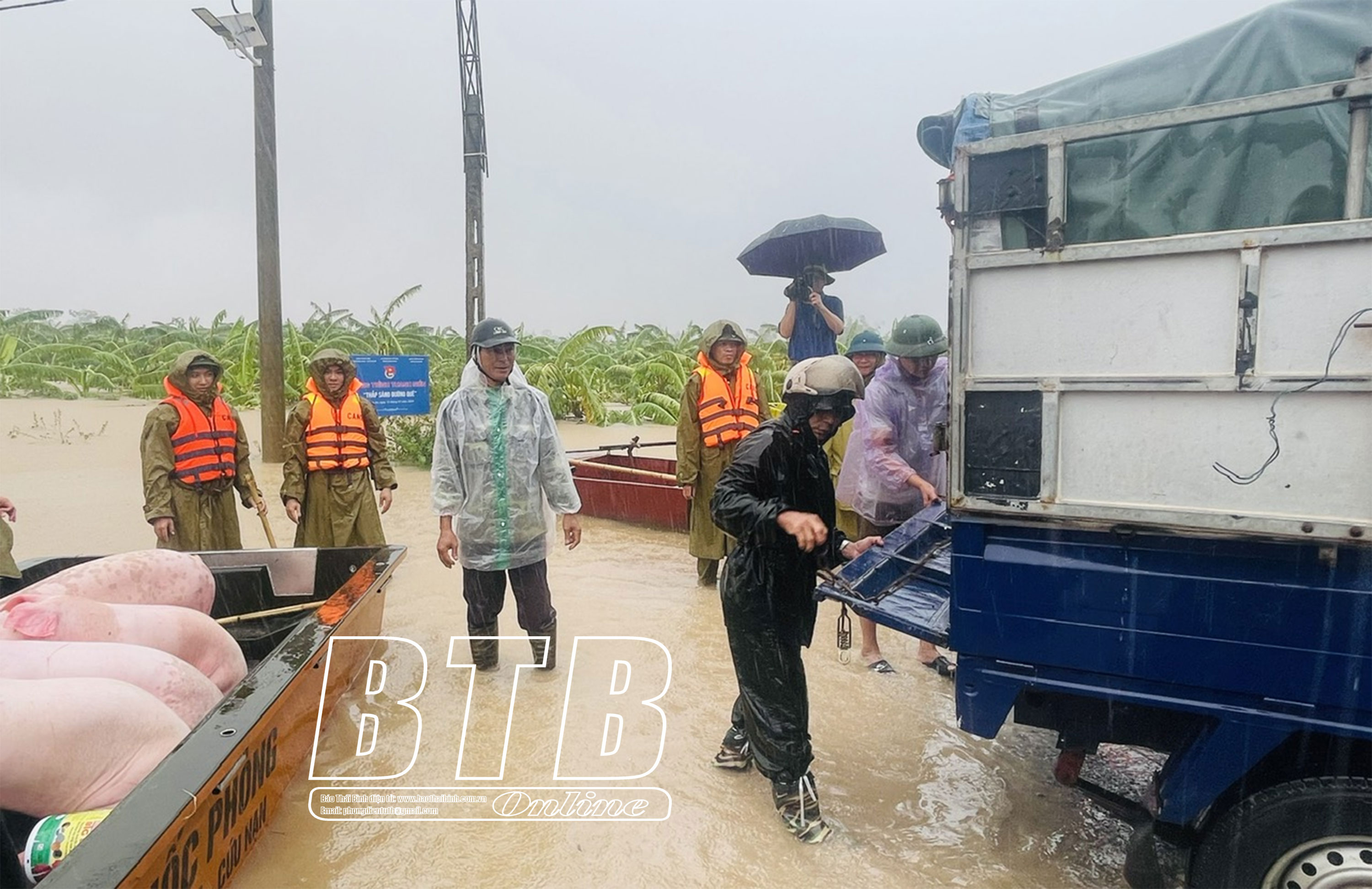 Huyện Hưng Hà huy động 20 ô tô chuyên dụng, 8 xuồng cứu hộ để hỗ trợ di dời dân và vận chuyển vật nuôi.