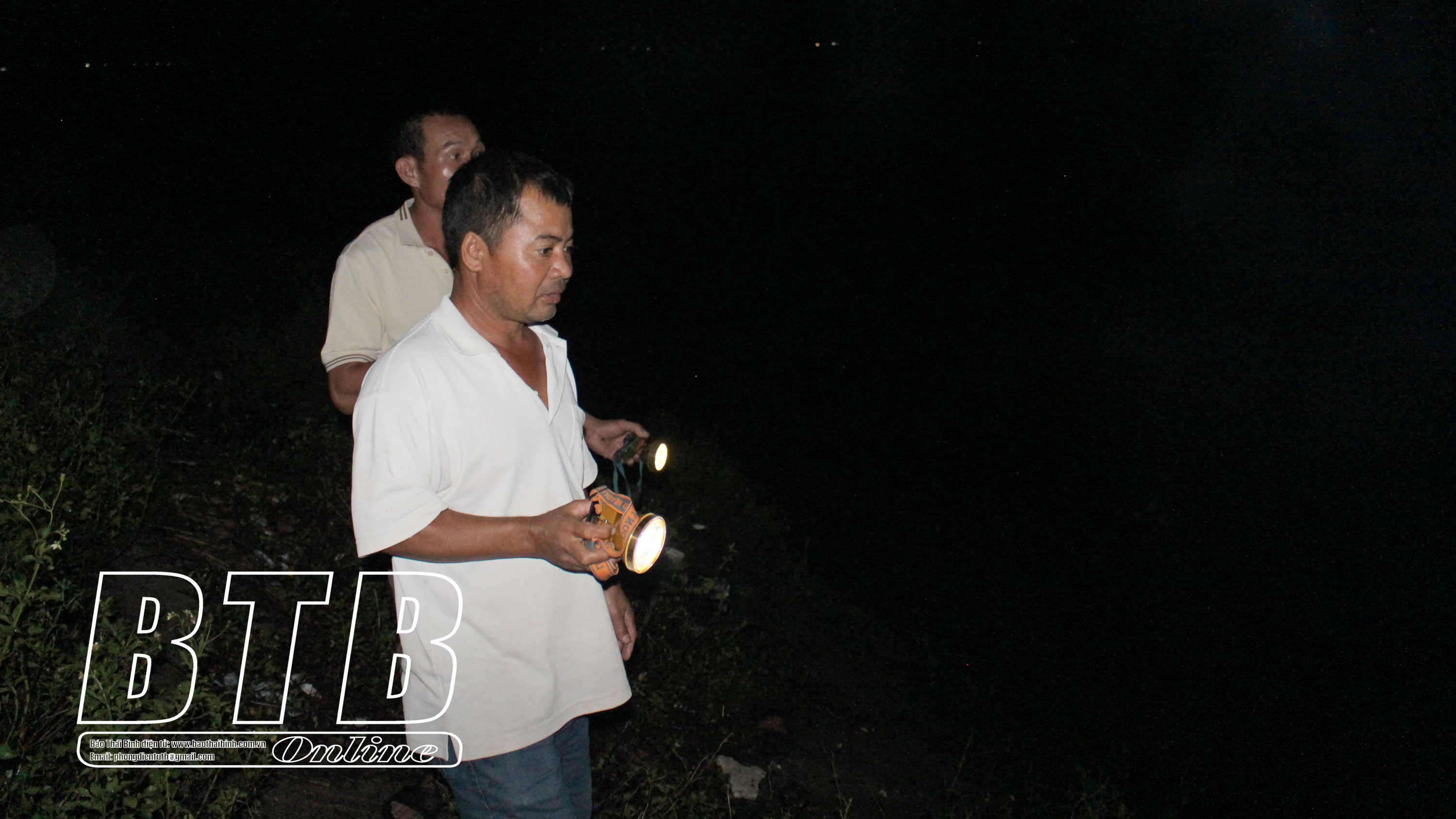 Đi tiếp đến xã Nam Hồng, nơi có tuyến đê tả sông Hồng đi qua địa bàn xã với chiều dài 3,4km. Lúc này đã gần 2 giờ sáng, trời tối đen, hạn chế tầm nhìn vì là điểm xa khu dân cư nên không có điện lưới, nhưng cũng may là mưa chỉ còn lất phất. Càng tới gần điếm, những ánh sáng từ đèn pin rọi lấp loáng mặt sông để kiểm tra mực nước. Lúc này, các thành viên sở chỉ huy tiền phương số 2 của huyện đang có mặt tại vị trí xung yếu để kiểm tra, đánh giá tình hình thực tế. Nước mỗi lúc một xoáy mạnh, chốc chốc lại dềnh lên kè Nam Hồng.