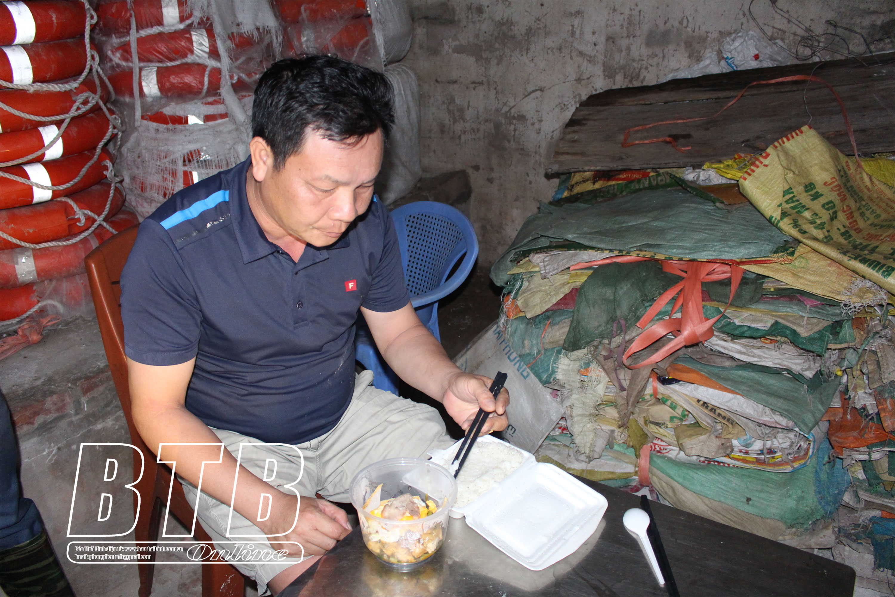 Bữa cơm ăn vội của những người canh gác đê ban đêm
