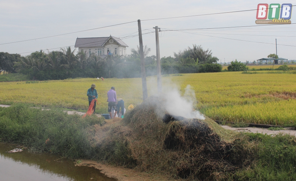 Tình trạng đốt rơm rạ tại xã Thái Thượng.