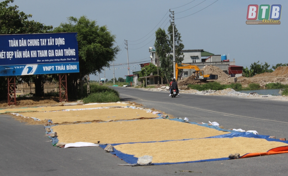 Đang là thời điểm cuối vụ thu hoạch lúa xuân nhưng tình trạng đốt rơm rạ ngoài đồng ruộng, phơi thóc trên đường xảy ra ở nhiều địa phương trên địa bàn huyện Thái Thụy.