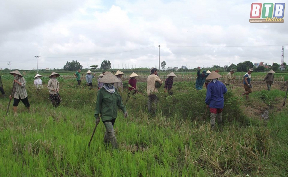 Hội viên Hội Nông dân xã An Đồng (Quỳnh Phụ) tổ chức ra quân diệt chuột bảo vệ sản xuất. Ảnh: Hà Dung