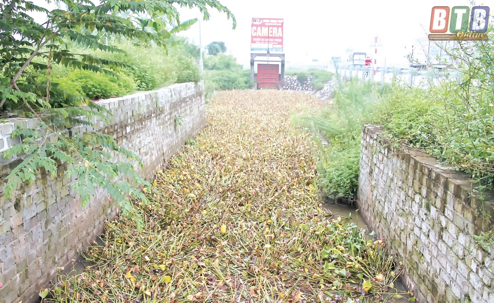 Thuốc diệt cỏ được phun xuống kênh mương xã Quỳnh Trang (Quỳnh Phụ) để diệt bèo bồng.
