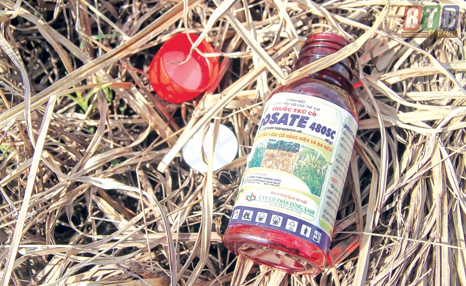 Thay bằng bỏ công sức ra dọn cỏ, chỉ với mấy chục nghìn đồng, nhiều nông dân đã lựa chọn mua thuốc diệt cỏ để phun trực tiếp lên bờ vùng, bờ thửa, phun lên các dòng kênh mương diệt bèo bồng. Sau khi phun xong, nhiều vỏ chai, bao bì còn dính thuốc không được thu gom, tiêu hủy mà một số người dân thiếu ý thức xả thải trực tiếp xuống kênh mương. Các loại chất độc tồn dư trong thuốc diệt cỏ gây nguy hại trực tiếp với người sử dụng, môi trường sinh thái và nguồn nước sinh hoạt là điều quá rõ ràng.