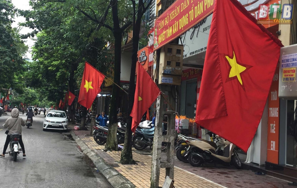 Trận đấu diễn ra đúng dịp kỷ niệm 73 năm ngày Quốc khánh 2/9 nên khắp các tuyến đường ở thành phố ngập tràn màu đỏ của Quốc kỳ.