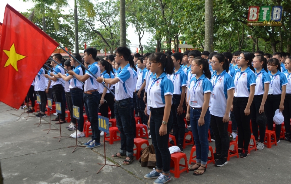 Học sinh Trường THPT Phụ Dực trong lễ khai giảng năm học mới 2018 - 2019. Ảnh: Đặng Anh