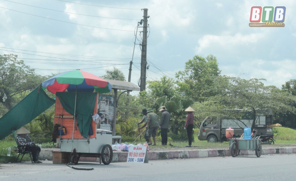 Không chỉ hàng hóa được bày bán chiếm hết vỉa hè của người đi bộ mà một số người dân còn dựng cột, căng bạt trên vỉa hè để bán hàng vừa gây mất mỹ quan vừa cản trở giao thông, tiềm ẩn nguy cơ tai nạn. Có nhiều hộ bị lực lượng chức năng thu giữ biển quảng cáo, dỡ các vật cản trên vỉa hè hôm trước, hôm sau lại vi phạm. Điều đáng nói là có hộ kinh doanh chỉ cách trụ sở xã chưa đến 100m nhưng lại thường xuyên “phớt lờ” Chỉ thị số 04.