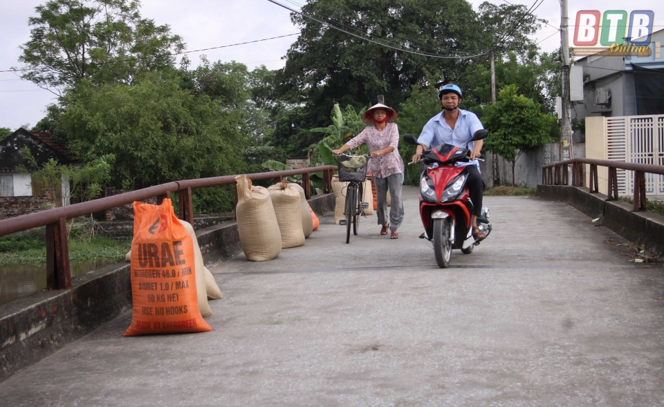 Mặt cầu tuy rất nhỏ nhưng cũng trở thành sân phơi thóc lý tưởng với nhiều người dân.