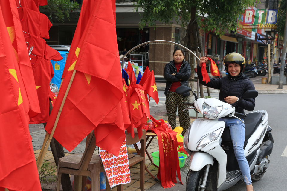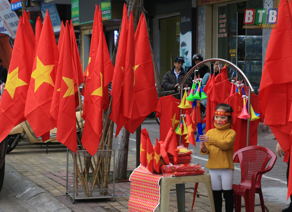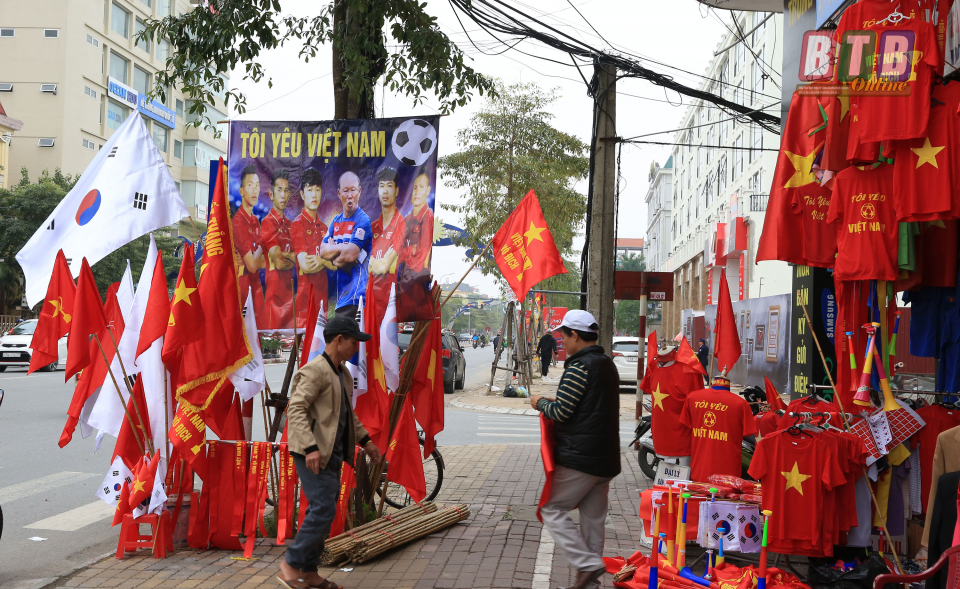 Cờ đỏ sao vàng và cả cờ Hàn Quốc được bày bán phục vụ người hâm mộ.