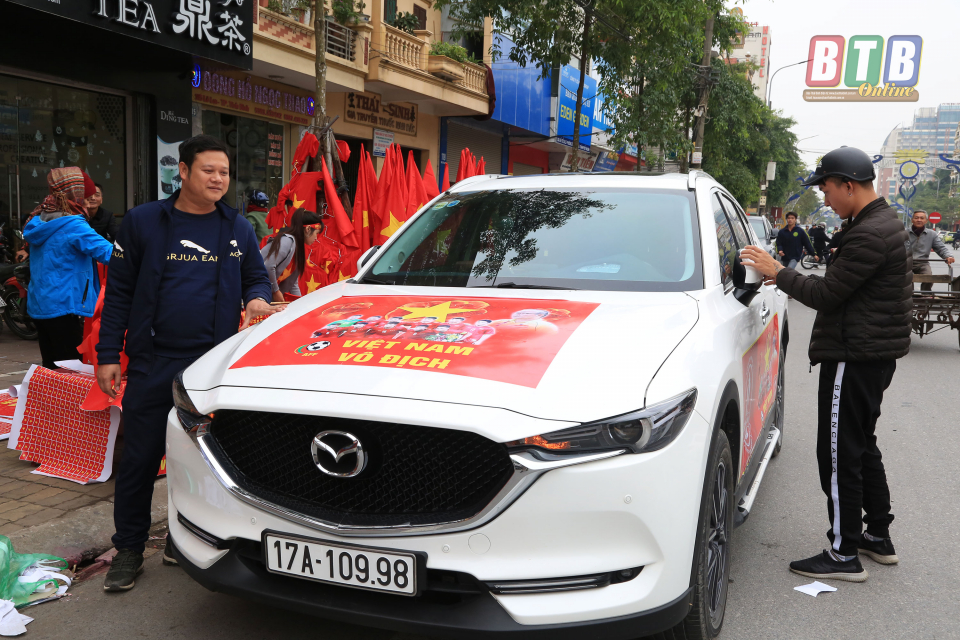 Những chiếc xe được trang trí cổ vũ cho đội tuyển Việt Nam.